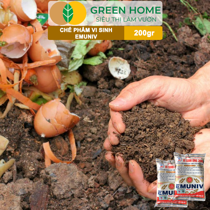 Dùng xử lý rác thải, làm phân hữu cơ vi sinh: Hòa 1 gói chế phẩm (200g) Chế Phẩm Vi Sinh EM Emuniv vào nước, tưới đều cho 1 tấn rác sao cho độ ẩm đạt 45-50%, ủ đống và che đậy đống ủ, sau 25-30 ngày tiến hành sang lọc,