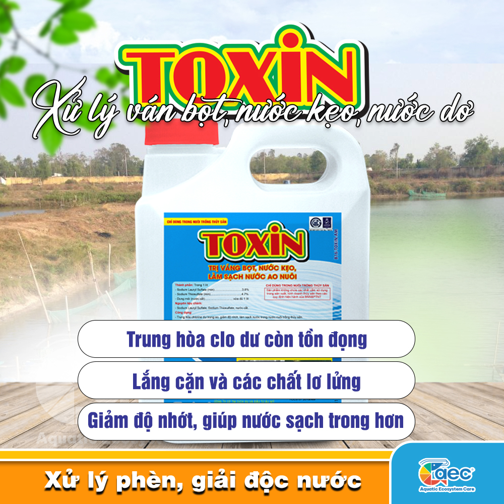 ✨Chế phẩm xử lý nước Toxin – Giảm nhớt, trung hòa và cải thiện chất lượng nước ao nuôi tôm