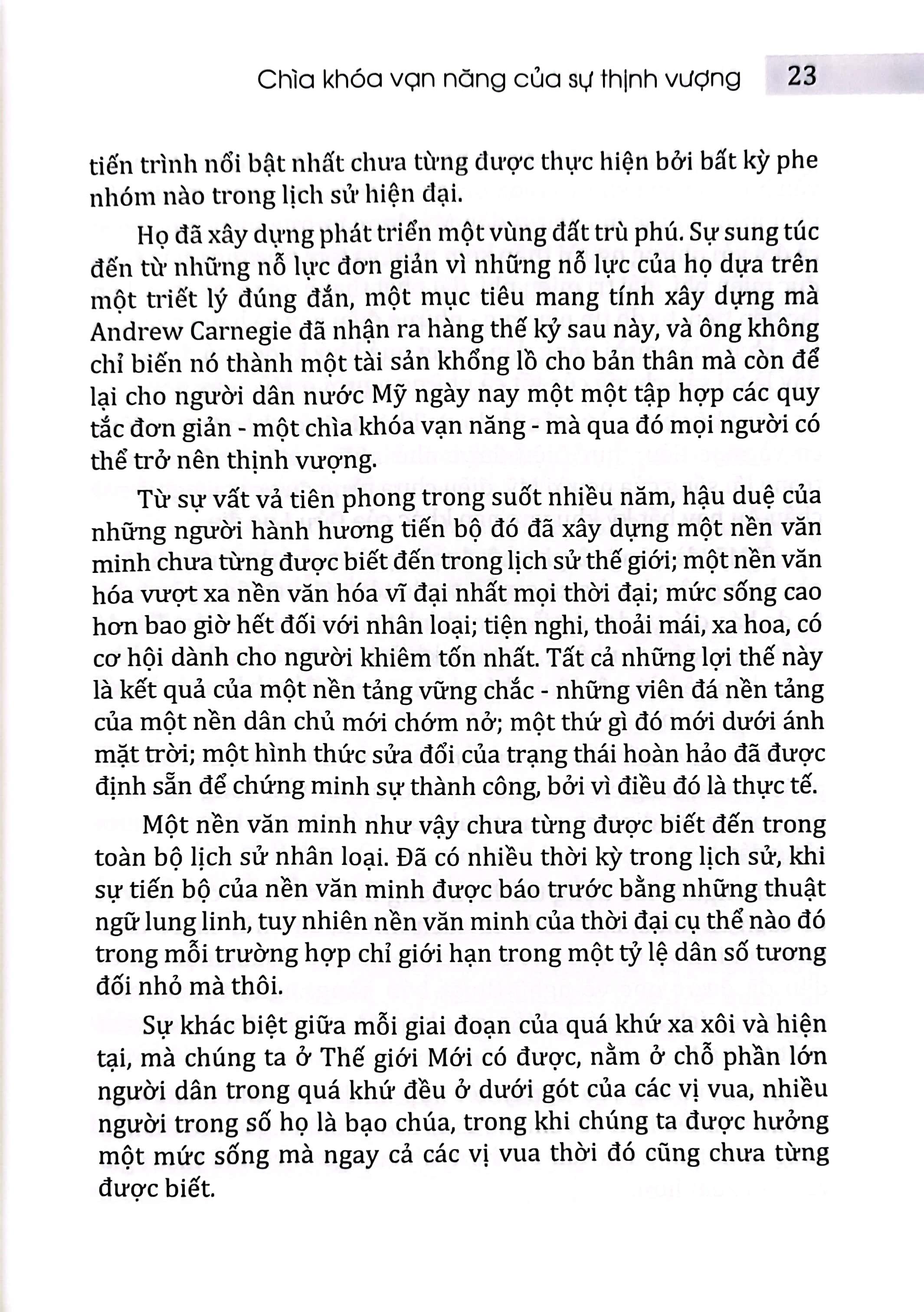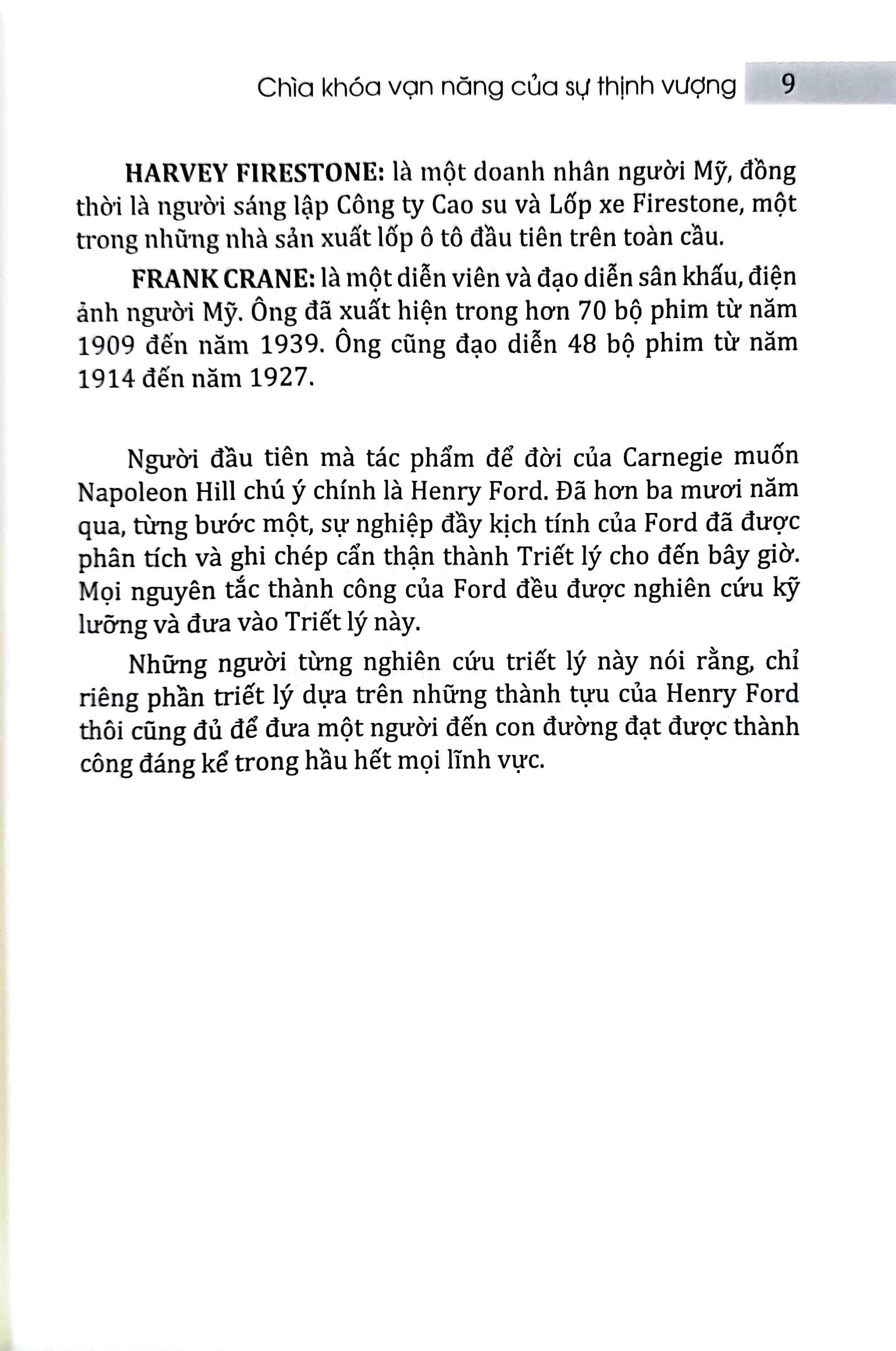 Dựa trên bí quyết thành công của tỷ phú Andrew Carnegie, cuốn sách Chìa Khóa Vạn Năng mô tả chi tiết triết lý vĩ đại nhất về thành công, một cách thực tế nhất. Triết lý này sẽ chỉ cho bạn đọc cách để đạt được thành công trên bất kì con đường nào của cuộc sống, dù là tình yêu, sự giàu có về vật chất, tinh thần hay bất cứ mục tiêu nào khác.