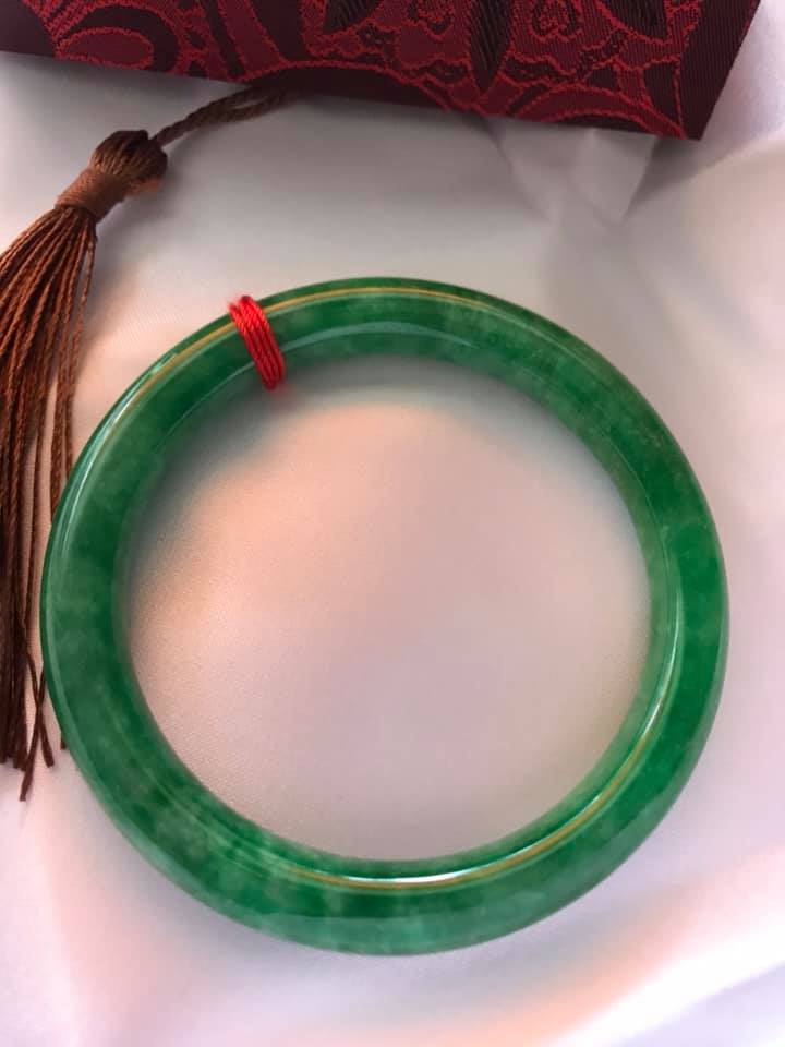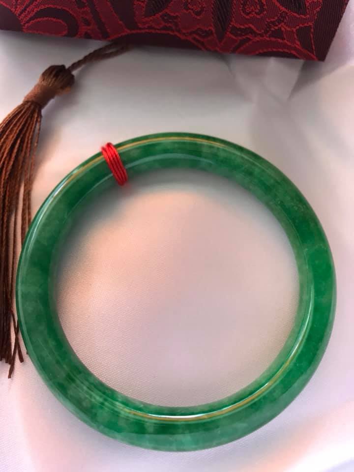 CHIẾC VÒNG CẨM THẠCH LÝ ĐẸP 53mm x DẦY 7,2MM XANH LÁ TƯƠI BÓNG ĐẸP NỮ HỎA MỘC 52kg đến 62Kg/SUNNY Q8
