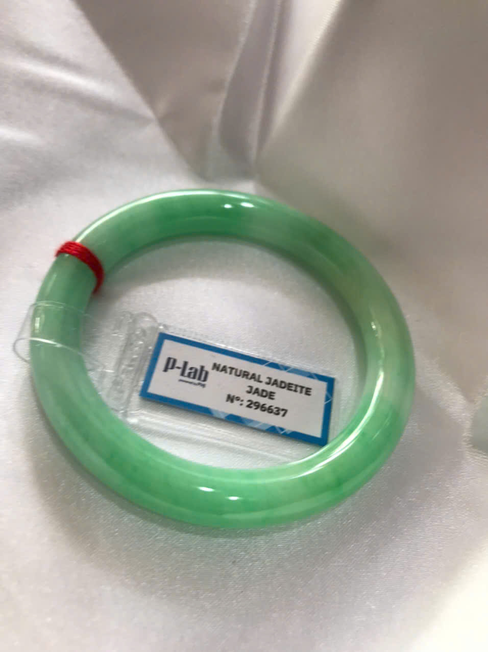 Mua tại TiktokChiếc Vòng Tay Đá Ngọc Cẩm Thạch Tự Nhiên Vip Lý Đẹp Ni 53mm x chột 8,2mm kiểm định kèm giấy chứng nhận P Lab Ni 296637 Màu Xanh Lý Tươi trắng xanh nhẹ bóng mượt sịn sang nữ 52kg - 60kg đeo ạ