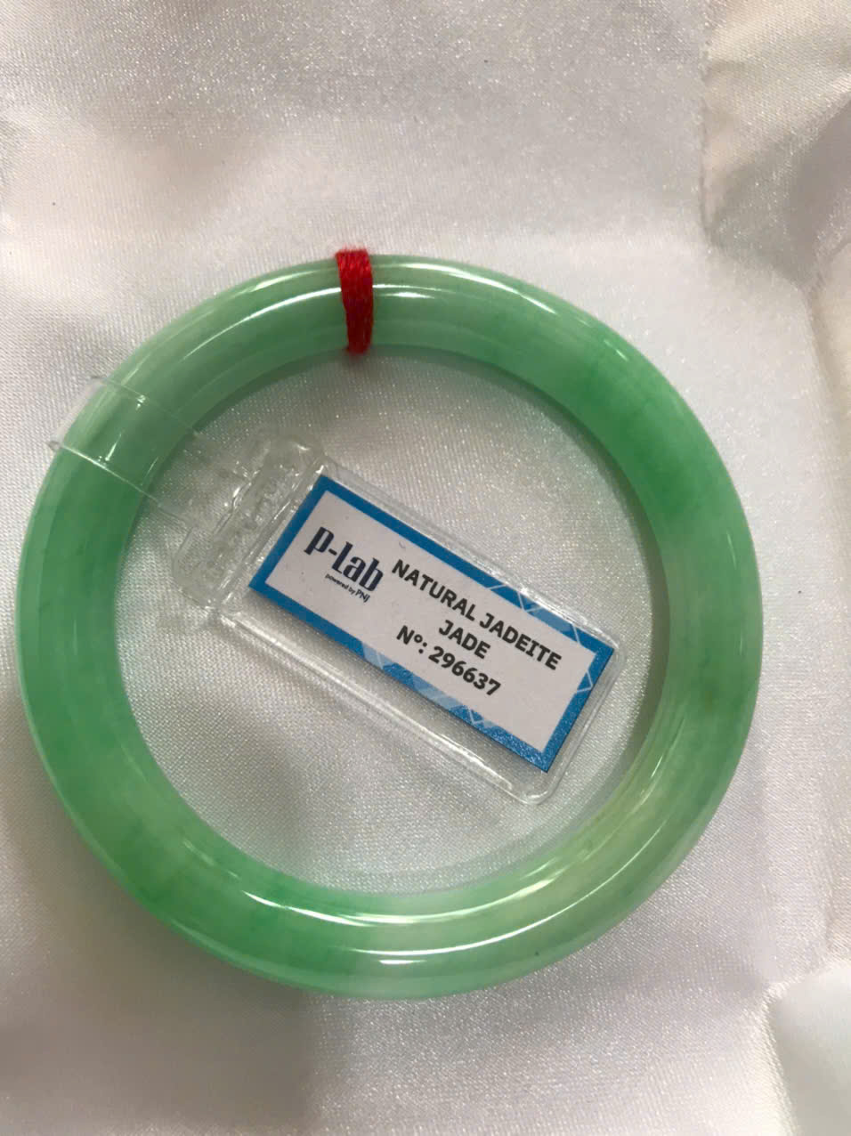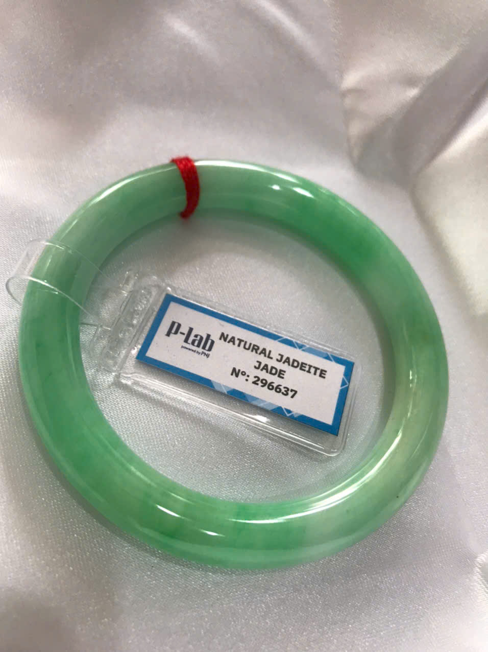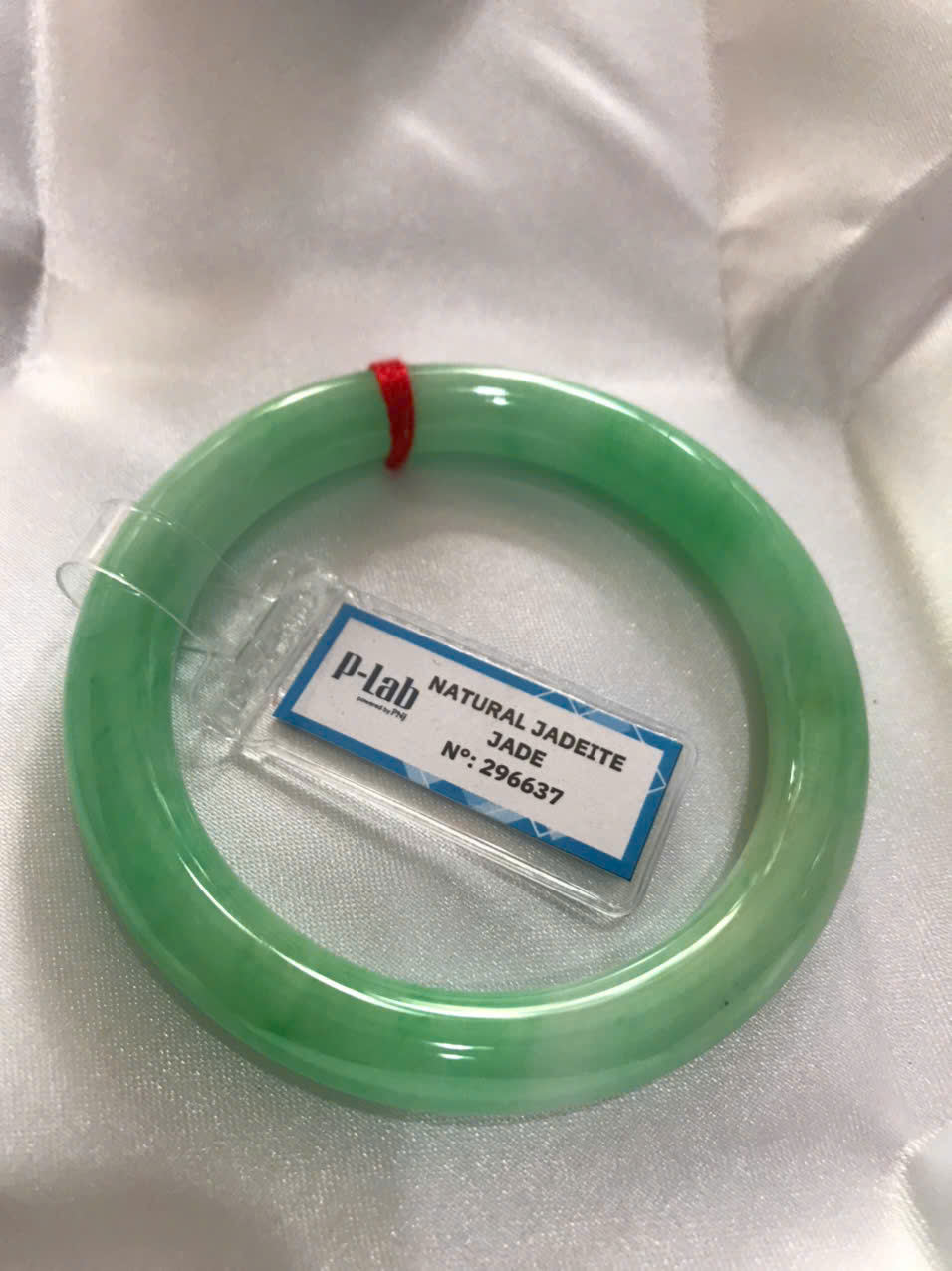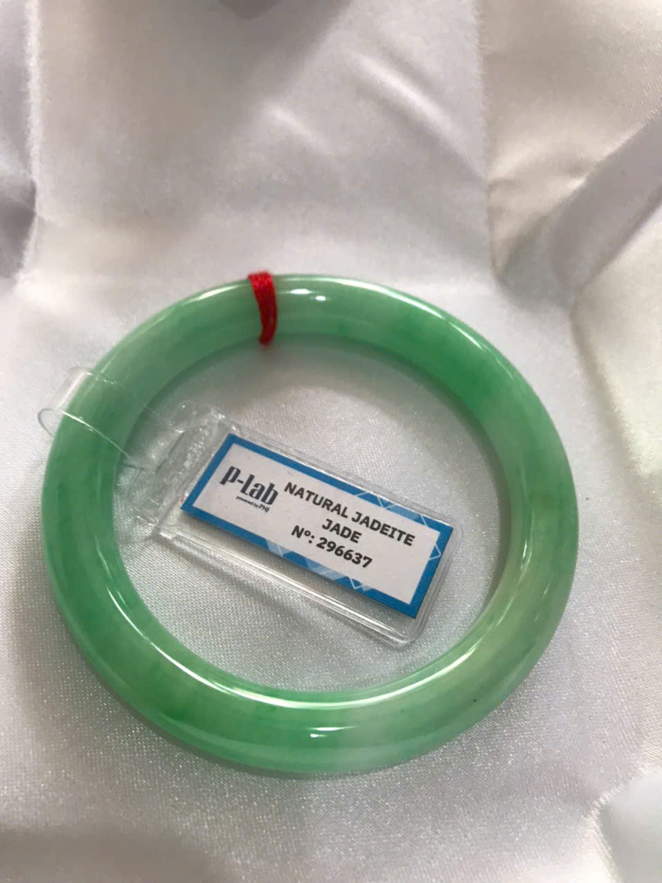 Vòng Ngọc Cẩm Thạch Tự Nhiên kiểm định kèm chứng nhận P Lab No 296637 Xanh Lý Đẹp Ni 53mm c8,2mm