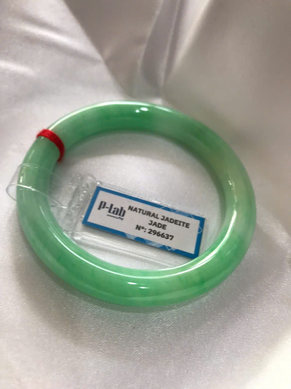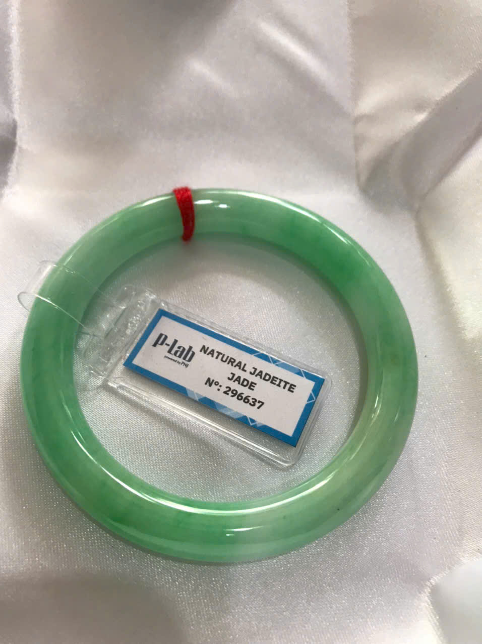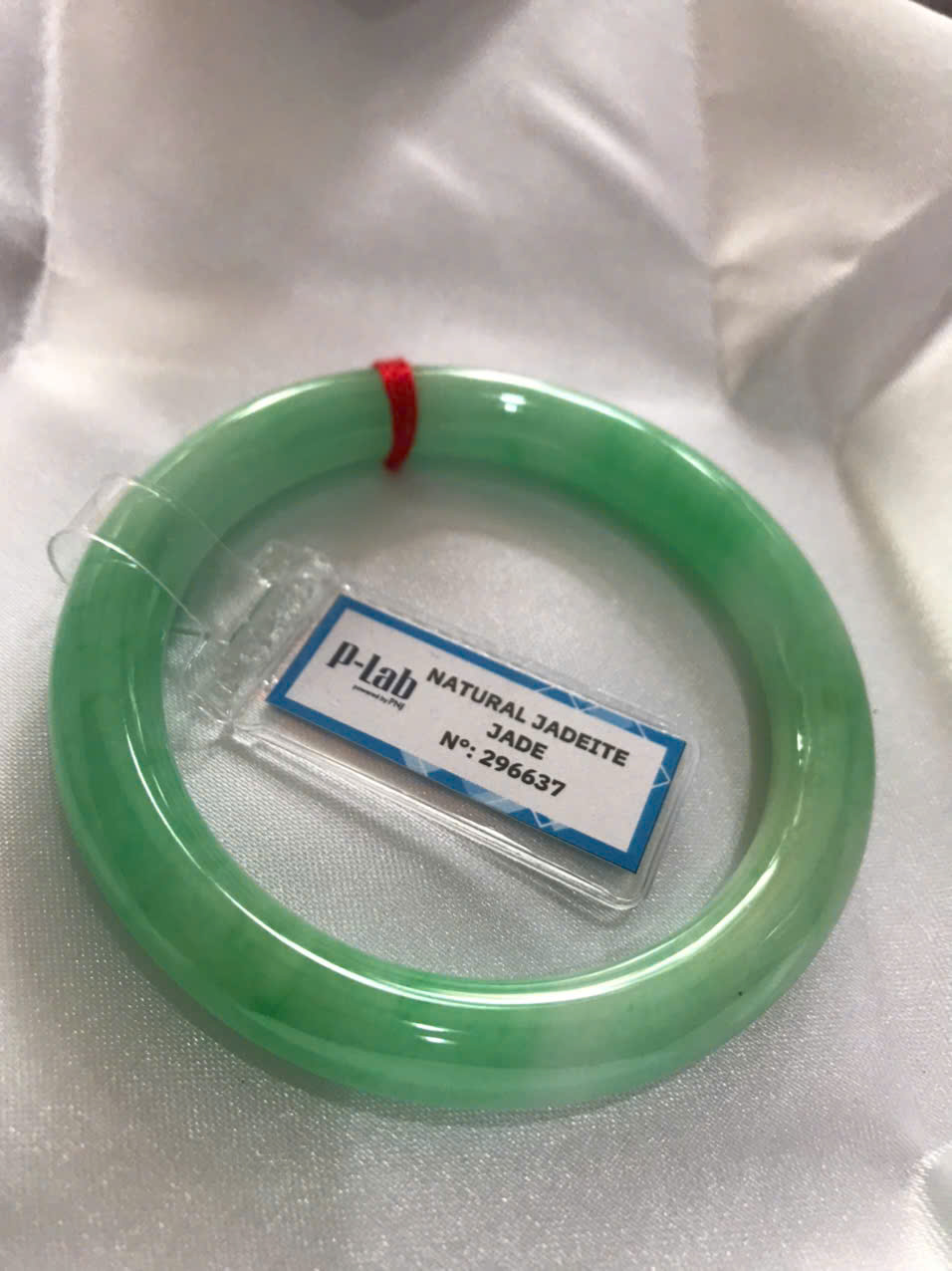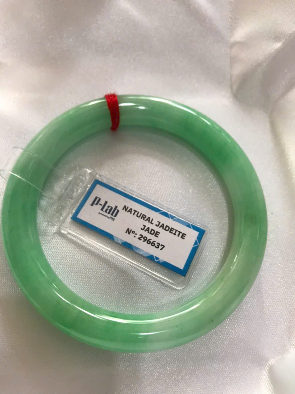Vòng Ngọc Cẩm Thạch Tự Nhiên kiểm định kèm chứng nhận P Lab No 296637 Xanh Lý Đẹp Ni 53mm c8,2mm