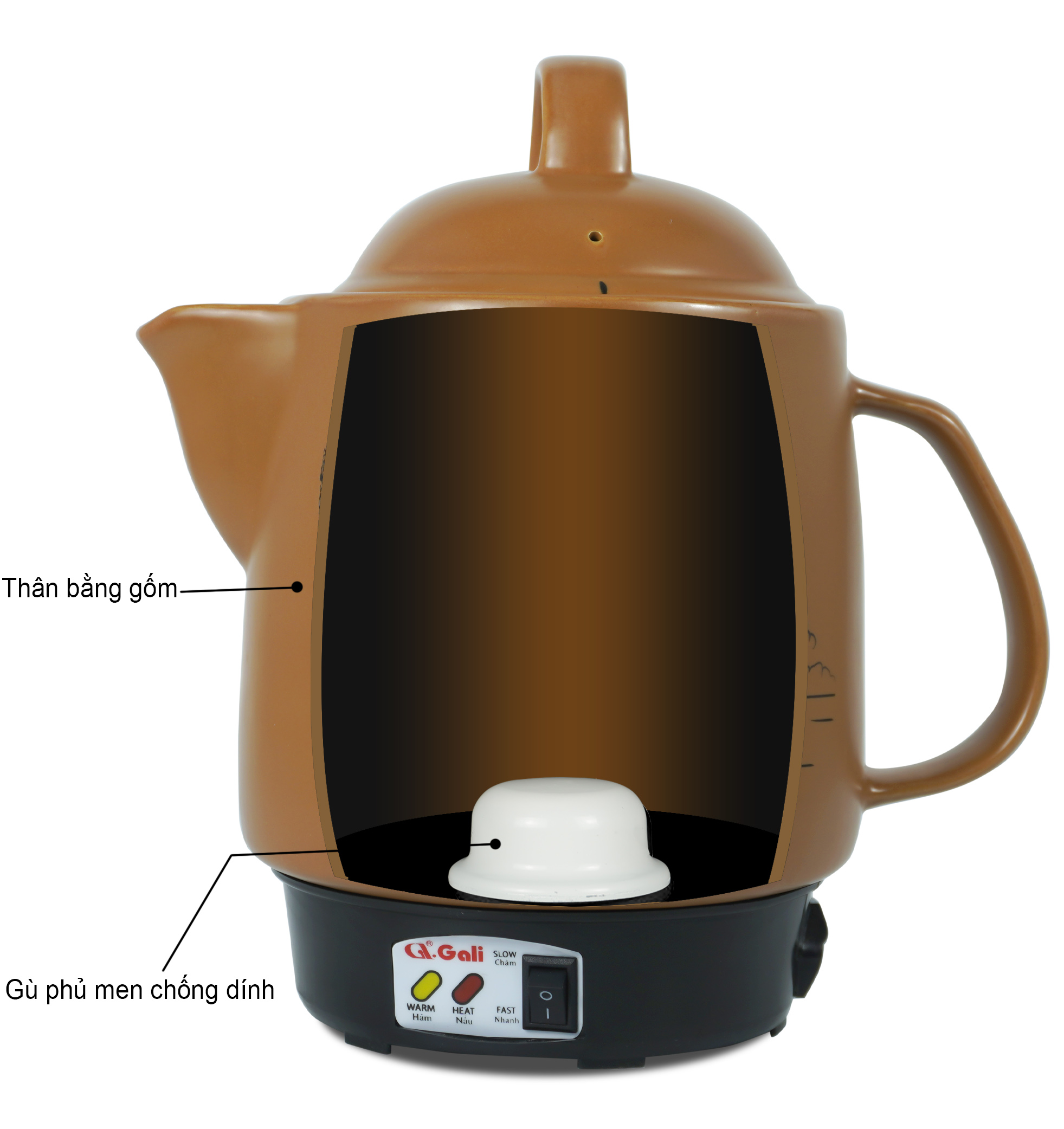 Ấm Sắc Thuốc Gali Chính Hãng 3.3L – Mâm Nhiệt Men Đá, Bảo Hành 2 Năm