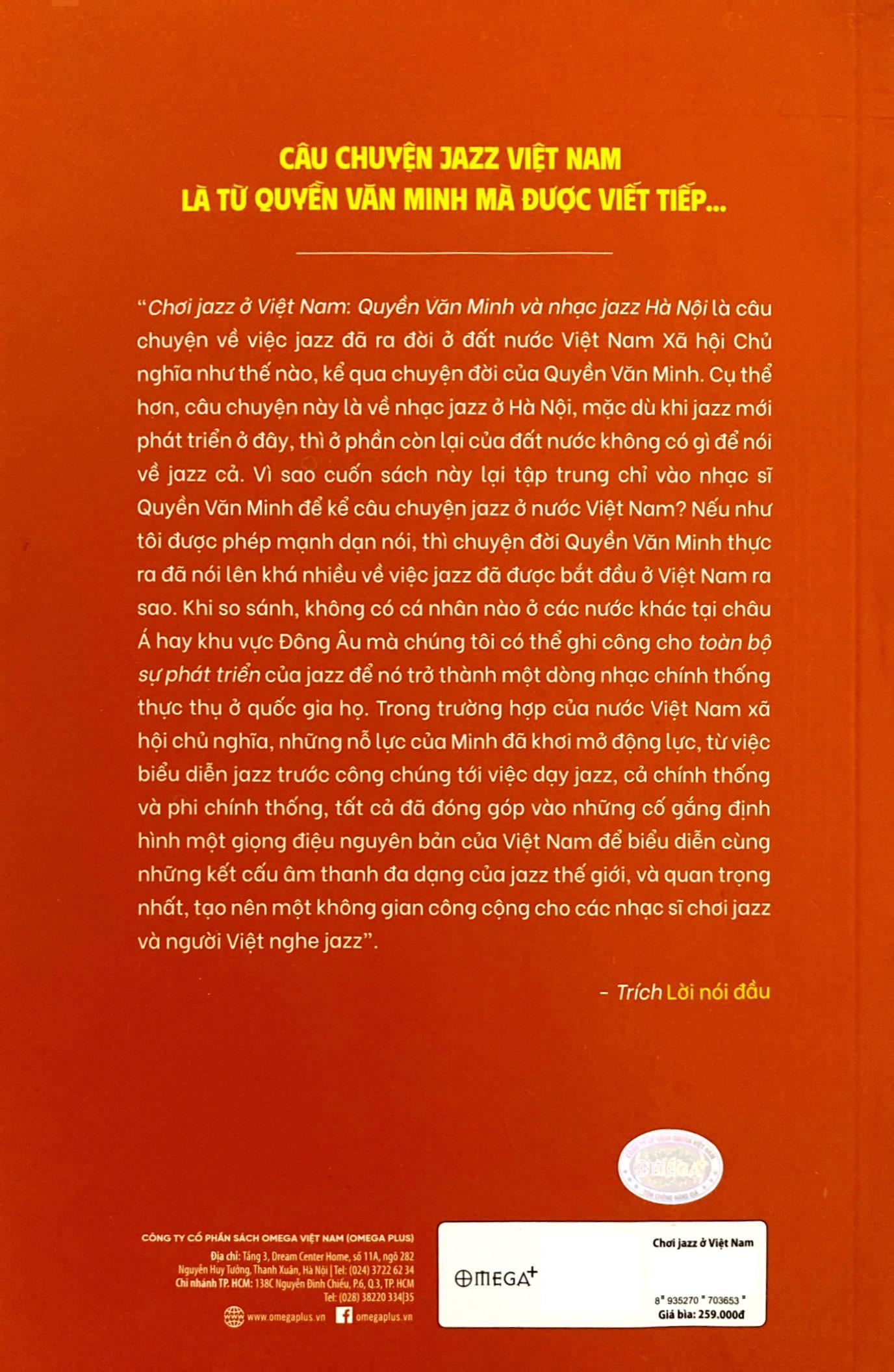 Mua tại TiktokJazz - một thể loại âm nhạc bắt nguồn từ cộng đồng người châu Phi ở Hoa Kỳ vào cuối thế kỷ 19 - đầu thế kỷ 20, đã lan ra khắp thế giới và hiện diện ở mọi nền văn hóa âm nhạc quốc gia. Nhạc jazz mang đậm tính nghệ sĩ, đầy nét đặc trưng và khiến những thính giả khi đã thích rồi sẽ như một kẻ si tình với nó. Ở Việt Nam, jazz cũng có rất nhiều câu chuyện riêng, kiến thức “nhập môn” riêng để khám phá, như người Việt chơi jazz ở Việt Nam là ai? Họ học chơi jazz ở đâu, bằng cách nào? Có thật là họ “chơi jazz” không? Những câu hỏi ấy sẽ được giải đáp trong Chơi jazz ở Việt Nam: Quyền Văn Minh và nhạc jazz Hà Nội - cuốn sách kể lại cuộc hành trình jazz ra đời ở Việt Nam, tập trung vào câu chuyện của nghệ sĩ Quyền Văn Minh - người đã tận hiến đời mình cho việc phát triển jazz ở mảnh đất quê hương, để thuật lại sống động cách mà nhạc jazz được nghe, được học và được biểu diễn ở nơi này. Không phải một bài phỏng vấn tiêu chuẩn mà ta vẫn thường đọc trên báo chí, nội dung cuốn sách như góp nhặt từ những lần ngồi xuống tâm tình, hàn huyên cùng một người bạn đáng tin cậy, để từ chuyện đời mà nghe ra chuyện nhạc, chuyện jazz. Tác phẩm là bước đệm cho những nghiên cứu và hiểu biết sâu hơn về nhạc jazz ở Việt Nam. ĐÁNH GIÁ/NHẬN XÉT CỦA CHUYÊN GIA “Đây là cuốn sách mà những người yêu âm nhạc trên toàn cầu không thể bỏ lỡ”. - Yamashita Yosuke TRÍCH ĐOẠN HAY