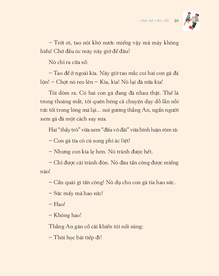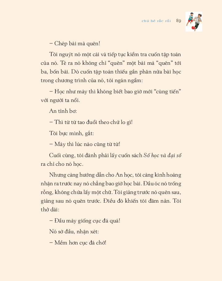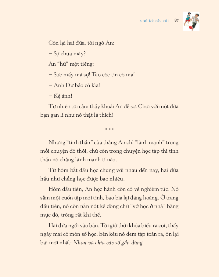 Chú Bé Rắc Rối là câu chuyện về đôi bạn “cùng tiến” An và Nghi. Nghi học giỏi và là một tấm gương sáng bao nhiêu thì An lại ham chơi và lười học bấy nhiêu, và những câu chuyện tréo ngoe bắt đầu xảy ra khi Nghi phải trở thành gia sư bất đắc dĩ của “chú bé rắc rối” An. Với giọng văn nhẹ nhàng và cách kể chuyện hài hước, nhà văn Nguyễn Nhật Ánh một lần nữa đưa độc giả đi qua nhiều tình huống dở khóc dở cười xoay quanh cuộc sống của hai cậu học trò đáng yêu với những nút thắt và mở tài tình, cùng những bất ngờ thú vị gây tò mò đến từ các nhân vật gần gũi với An, Nghi. Chú bé rắc rối là một lát cắt về thời học trò “nhất quỷ nhì ma” với những kỷ niệm khó quên trong mỗi người.