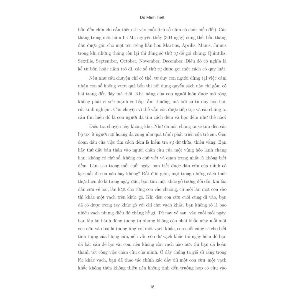 Tác giả: Đỗ Minh Triết Nhà xuất bản: Thế Giới Số trang: 420 Ngày phát hành: 10-2023 GIỚI THIỆU SÁCH: Cuốn sách ghi lại lịch sử sáng tạo và cải tiến chữ số của nhân loại. Đó là một hành trình gian nan và vô cùng dài lâu. Sau nhiều nghìn năm, trải qua sự tồn tại và diệt vong của nhiều nền văn minh, nhiều đế chế từ đông sang tây, cuối cùng cả nhân loại ngày nay đều chia sẻ và sử dụng chung một thứ chữ số. Và còn hơn thế, lịch sử của các chữ số còn hé lộ cho chúng ta vô số những điều thú vị của lịch sử nhân loại. GIỚI THIỆU TÁC GIẢ: Đỗ Minh Triết: tốt nghiệp Đại học Sư phạm TP. Hồ Chí Minh, chuyên ngành Toán. Từ năm 2016 đến năm 2019, là giáo viên toán ở thành phố Vũng Tàu. Hiện đang định cư, học tập và làm việc tại Mỹ. Ngoài công việc dạy học, tác giả còn đam mê tìm tòi, nghiên cứu Toán học, nhằm mục đích truyền cảm hứng, trí tưởng tượng và sự sáng tạo đến với học sinh. Tác giả là quản trị viên trang Toán Học Kỳ Thú ( Tác phẩm đã xuất bản: Tỷ lệ vàng (hay là dãy số Fibonacci), xuất bản năm 2017, NXB Đại học Sư phạm TP. HCM. REVIEW SÁCH: Đa phần chúng ta không còn xa lạ gì với những những nền văn minh cổ đại lừng lẫy một thời: Babylon, Ai Cập, Hy Lạp, La Mã, Inca, Maya, Trung Hoa… Những cái tên cổ xưa ấy gợi nhắc đến những thành phố tráng lệ, những lăng tẩm nguy nga, và cả những cuộc chiến tranh chinh phạt các vùng đất đai rộng lớn. Nhưng ít ai để ý đến việc các nền văn minh đó đã viết số và tính toán ra sao. Và nếu không nói quá, việc sử dụng chữ số, cũng như cách ghi số và tính toán bằng con số, chính là nền tảng quan trọng bậc nhất cho sự hùng mạnh của các đế chế. Các thương nhân đã tính toán lượng hàng hóa ra sao, nhà nước quản lý quân đội như thế nào, lịch pháp được ghi chép bằng gì,… đó là những vấn đề thiết yếu mà một nền văn minh không thể không giải quyết. Trên thực tế, mỗi thời đại, mỗi vương triều đều sử dụng một hệ thống chữ số và cách ghi số nhất định nhằm đảm bảo xã hội có thể vận hành trơn tru. Ngay khi người Sumer xây dựng đế chế trên bờ hai con sông Tigris và Euphrates, cũng gần như cùng lúc nhà Thương lập quốc trên đồng bằng rộng lớn phía bắc Trung Hoa, con người đã tự tạo cho mình những chữ số thô sơ đầu tiên. Trải qua nhiều triều đại, từ những cục đất nặn hay những hình vẽ ban đầu, các chữ số đã được cải tiến thành những đường nét tinh gọn và giản tiện. Và quan trọng hơn nữa, người ta có thể dùng các con số để ghi chép và tính toán. Sẽ ra sao nếu con người cứ dềnh dàng với việc đếm như các em bé, đếm hết các ngón tay, ngón chân, đếm sang que tính và vạch khắc, mà vẫn chưa biết khi nào mới tính được một phép nhân vài chữ số giản đơn. Ngày nay nhìn lại, việc sử dụng chữ số (bên cạnh chữ viết) là một chỉ dấu để chúng ta đánh giá mức độ phát triển của một nền văn minh trong quá khứ. Tất cả những điều trên cho chúng ta một ý niệm, rằng chữ số có lịch sử của nó, và lịch sử ấy không tách rời, thậm chí gắn chặt số phận mình với lịch sử nhân loại. Cuốn sách Chữ số và thế giới – Nguồn gốc bị lãng quên đưa bạn vào cuộc hành trình xuyên không gian và thời gian để tìm hiểu gần như toàn bộ các con số đã xuất hiện trong lịch sử nhân loại, từ chữ số của các đế chế hùng mạnh đến chữ số dùng trong các bộ lạc hẻo lánh bên bờ Thái Bình Dương. Loài người hôm nay đã phát triển đến một tầm mức rất cao, nhưng chắc chắn chúng ta sẽ không thể thu gặt thành quả đó nếu không có hành trình hàng ngàn năm kiếm tìm và cải tiến chữ số của người xưa.