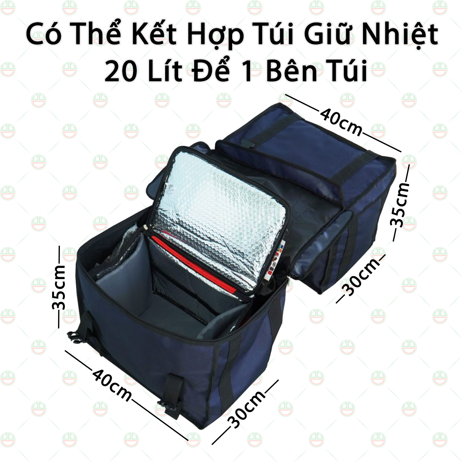 - Túi bên phải : 45 x cao 35 x Rộng 30cm Túi giao hàng đôi yên sau xe máy với thiết kế kiểu đặt sau yên xe máy tiện dụng giao hàng cho các shipper được chúng tôi phân phối ra thị trường. Mỗi bên hông sẽ có 1 túi đơn với thể tích chứa đồ lên đến 45 lít / 1 bên giúp các bạn shipper chứa được nhiều đồ giao hàng tăng năng suất mà tiết kiệm được không gian vận chuyển 1 cách hiệu quả bằng xe máy. Với cấu trúc may dây đai trợ lực đáy, hông, quai xách và đặc biệt là phần cầu nối giữa yên xe luôn được đảm bảo trợ lực tối đa khi chứa nặng nên giúp độ bền túi được lâu dài. Ngoài ra, ở mặt dưới cầu nối giữa yên xe túi còn được thiết kế 4 sợi dây đai với 4 khóa bấm giúp việc giữ cố định giữa túi lên tay nắm sau yên xe được đảm bảo không bị xê dịch trái phải cũng như 2 bên túi khi chứa không cân bằng. Tháo mở chỉ việc 1 thao tác bấm nút khóa tự bung ra. Nắp mỗi túi đơn với kiểu may có nẹp che dây kéo và tăng cường trợ lực căng toàn thân túi bởi 2 khóa nhựa. Việc giao hàng chuyên dụng cần túi giữ nhiệt như thực phẩm, đồ ăn,…rất đơn giản cho túi giao hàng Đôi sau yên xe máy này. Đó là bạn chỉ mua thêm TÚI GIỮ NHIỆT 20 LÍT bỏ vô trong túi giao hàng đôi này là giải quyết được nhu cầu shipper bằng túi giữ nhiệt giao hàng cần thiết cho khách. (Lưu ý : Túi giữ nhiệt các bạn phải mua thêm size phù hợp) Với khả năng mỗi túi đơn chứa được 1 túi giữ nhiệt loại 20 lít có size từ 40 x 30 x 28cm Ngoài ra, bạn còn có thể đặt thêm 1 túi giao hàng size lớn khác từ 70 lít trở xuống cũng như Rổ Nhựa Cỡ Lớn mà bạn hay thấy các Shipper các hãng vận chuyển sử dụng, đặt lên trên yên sau giữa cầu nối của Túi giao hàng Đôi này giúp tăng cường khả năng vận chuyển hàng hóa với số lượng nhiều.