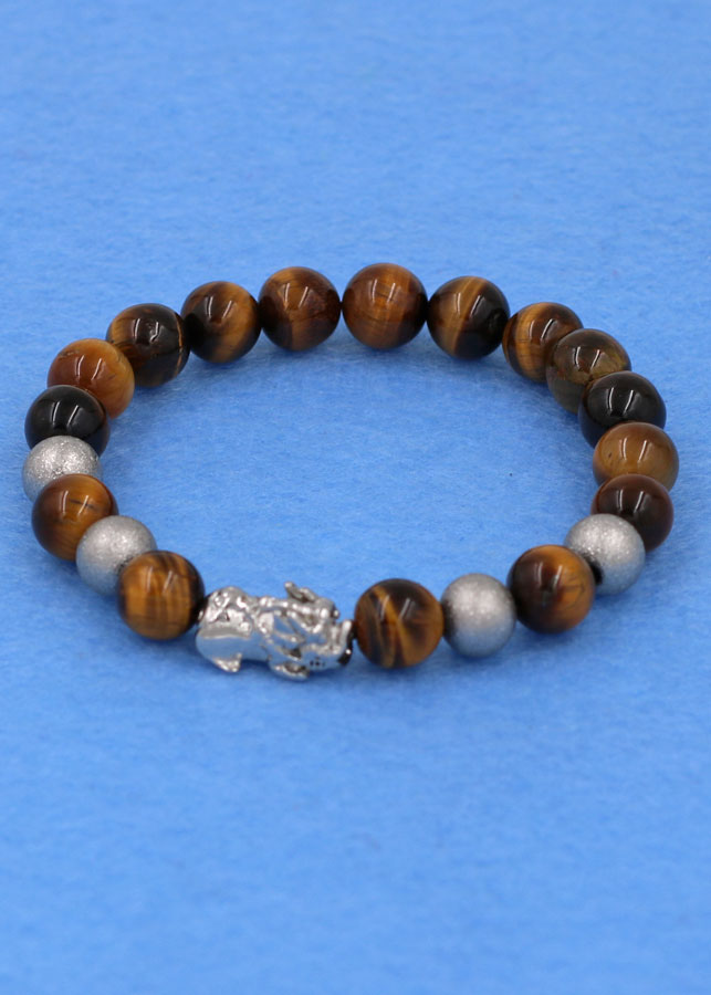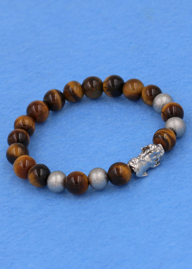 Vòng đá mắt hổ vàng nâu được làm từ đá mắt hổ vàng nâu, đây là loại biến thể phổ biến nhất trong tự nhiên. Màu nâu vàng trong phong thủy ngũ hành thuộc hành Thổ. Vì vậy, vòng đá mắt hổ vàng nâu hợp với những người mệnh Thổ và mệnh Kim.