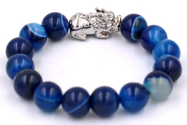 Chuỗi đeo tay thạch anh xanh dương sọc 12 ly - cẩn Tỳ Hưu inox VTAXDSTHT12 - hợp mệnh Mộc, mệnh Thủy