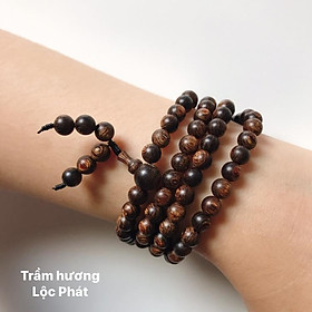 Vòng tay trầm hương thuần chay chuỗi tràng 108 hạt 6mm