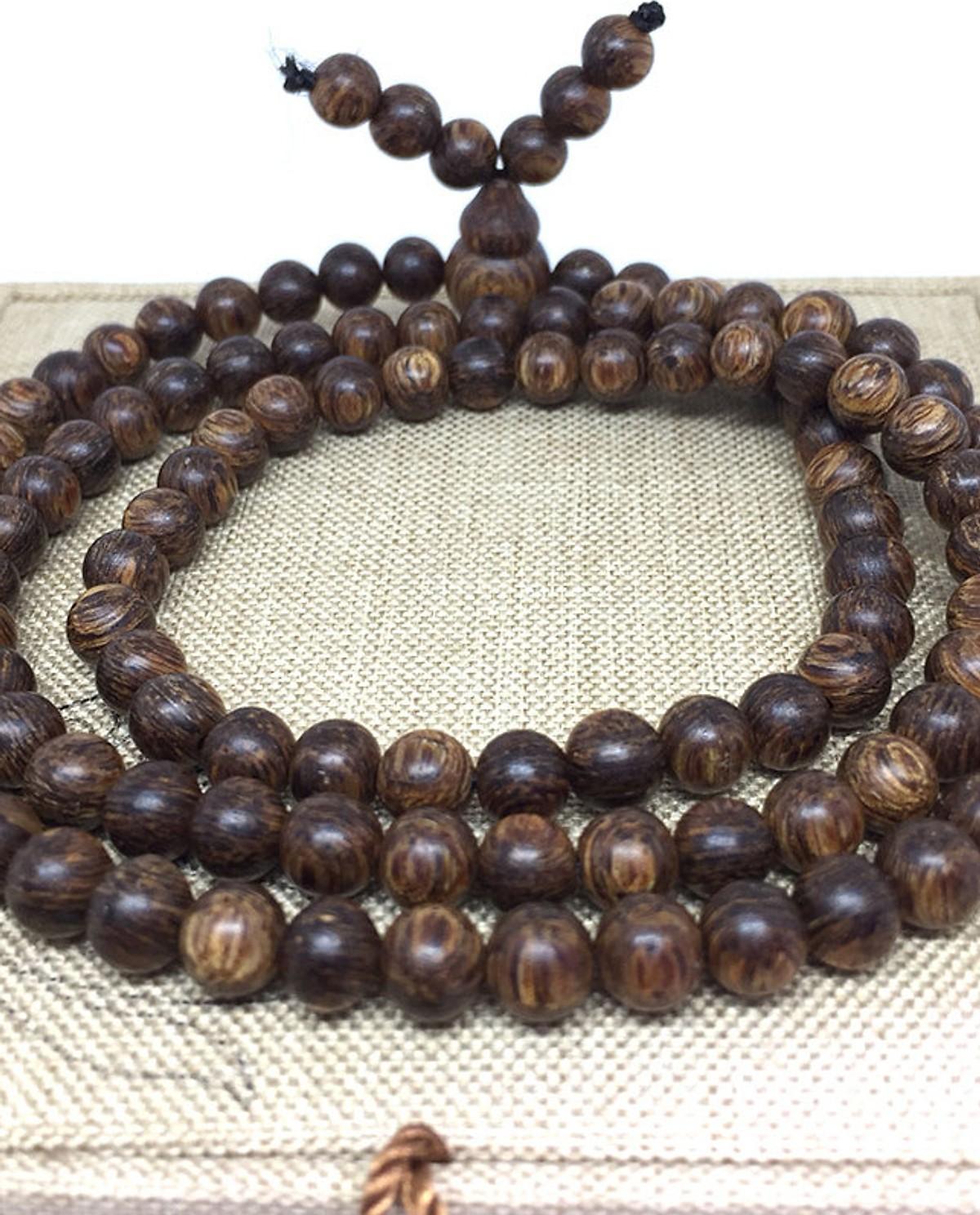 Trong Kinh Phật dạy: “Nếu như muốn tiêu trừ các phiền não chướng, nên xâu chuổi 108, luôn đem theo bên mình, hoặc đi đứng nằm ngồi, lần chuổi niệm Phật, niệm Pháp, niệm Tăng, lần chuổi trì niệm danh hiệu Phật càng nhiều càng tốt. Nếu như mãn 20 vạn biến thì có thể đạt đến Thân Tâm Bất Loạn.”