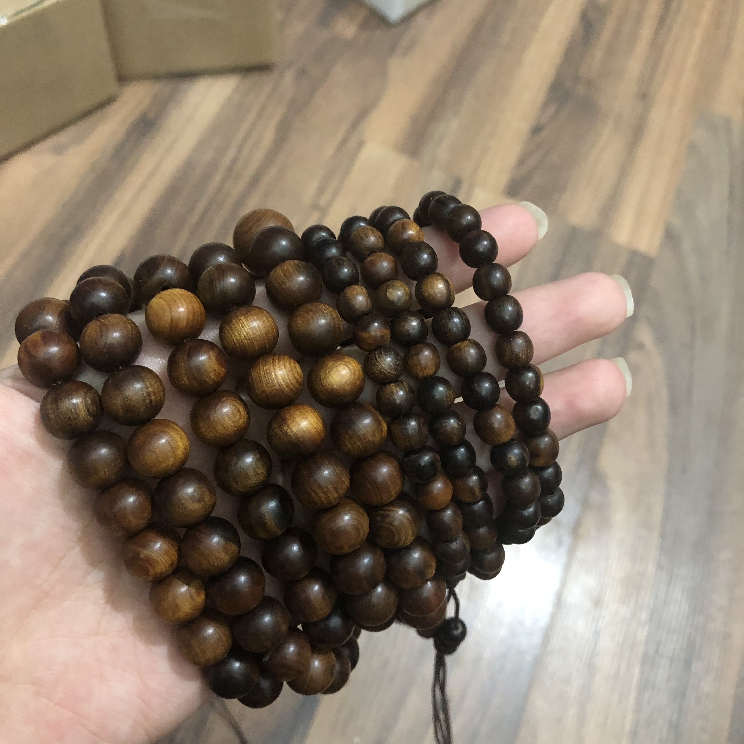 Vòng này của bên mình được làm từ gỗ Tô Hợp Bách chìm nước hàng VIP, cây mọc ở cao nguyên Mộc Châu rất nhiều tinh dầu, chìm trong nước đặc biệt loại này mùi thơm vĩnh viễn, vân gỗ xoáy như hoa tay rất đẹp, toàn bộ gỗ già tốt nhất. những cây này thường được sống ở vùng đất khắc nhiệt, ở đầu nguồn suối nước sạch nhất, là chỗ thường xuyên sét đánh, nên cây này được tích tụ các nguyên khí do trời đất ban tặng. khi đeo tạo cho mình nguồn năng lượng đặc biệt.