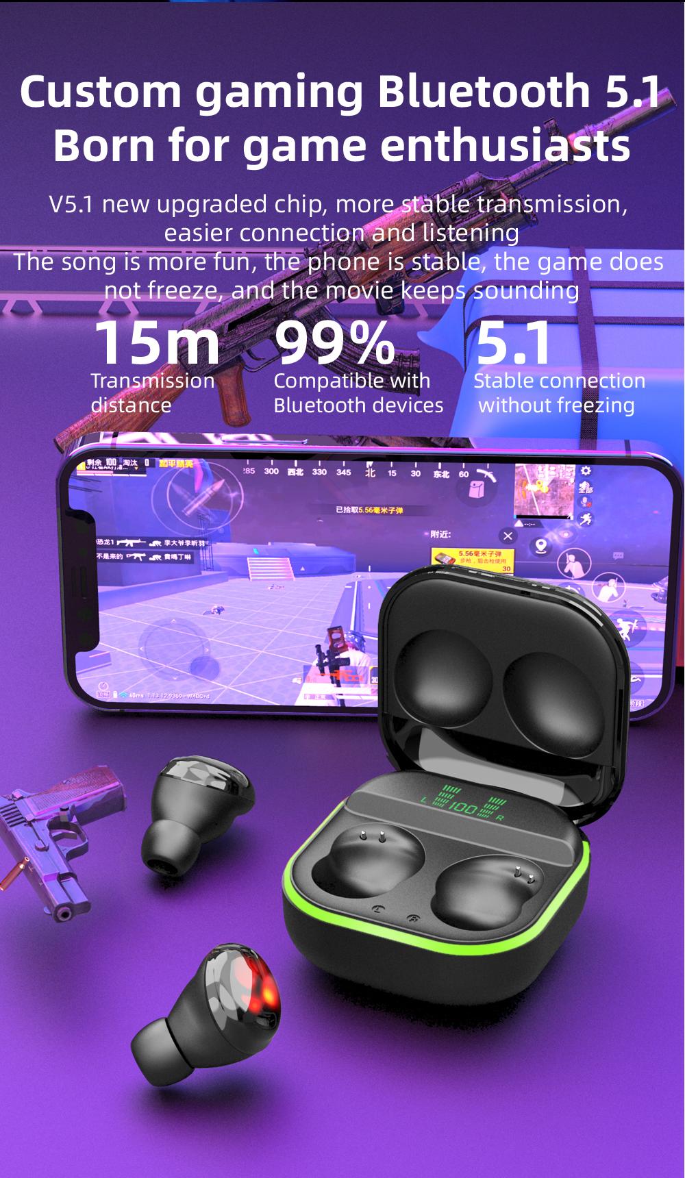 ✨CINCATDY Tai Nghe Bluetooth Earbuds Gaming Headset True Wireless Headphone Dock Sạc có Led Báo Pin Kép S190