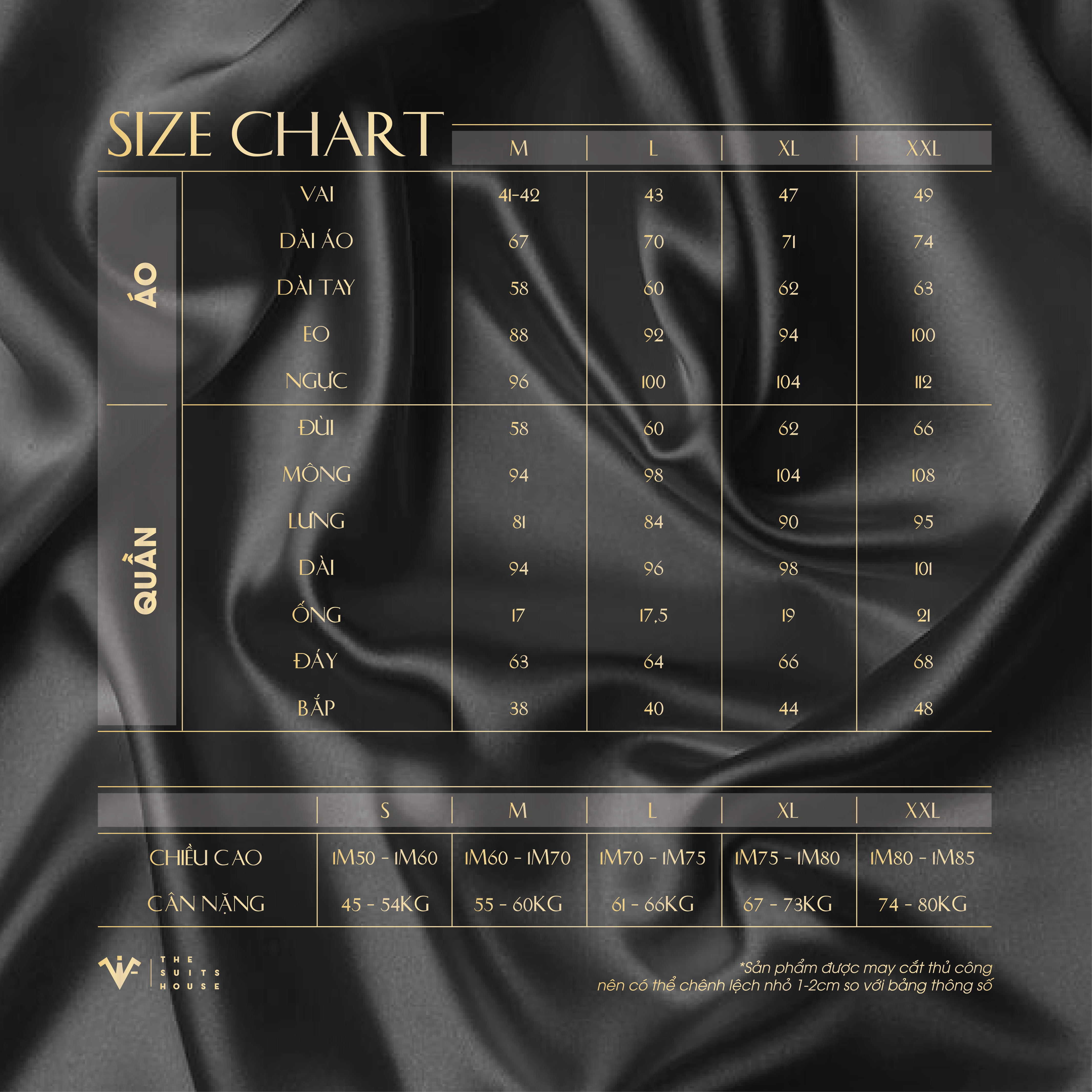 - Size: S M L XL XXL • Một bộ suit bao gồm: