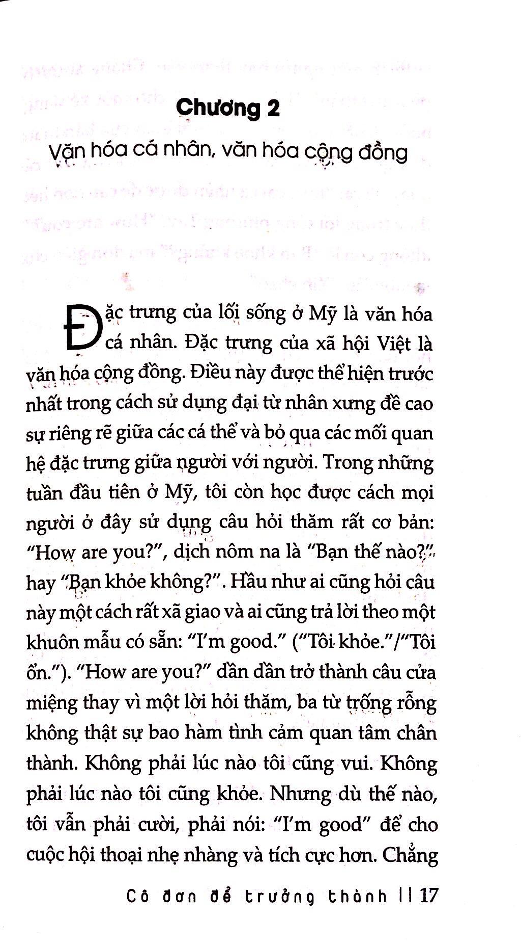 Cô Đơn Để Trưởng Thành Bốn năm du học Mỹ của tôi đọng lại trong những trang văn này, những ghi chép về sự va chạm văn hóa ngay từ tuần đầu tiên, về sự