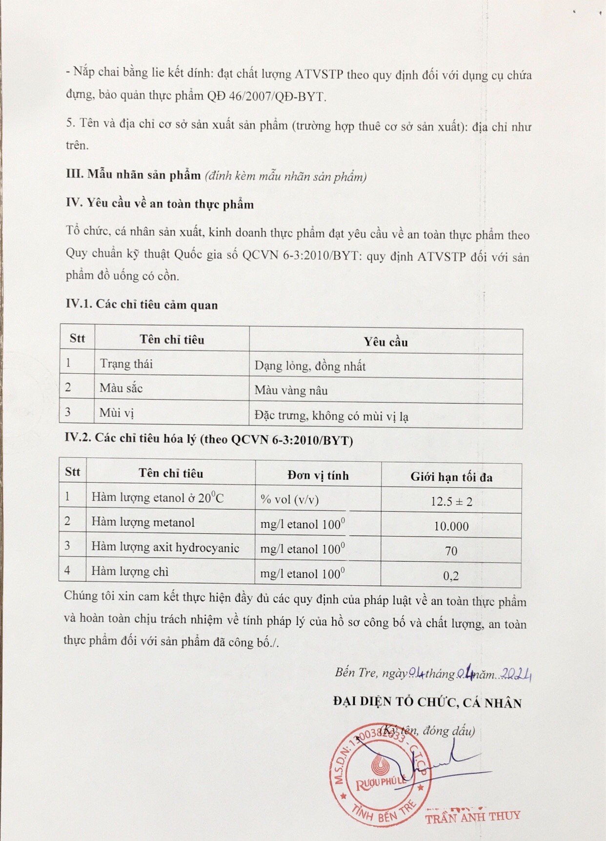 Sản phẩm của cơ sở sản xuất Rượu Danh Tửu Sản xuất và đóng chai tại nhà máy Rượu Phú Lễ --- Thành phần: Nếp mùa Ba Tri, cốt chuối hột rừng, men nấu