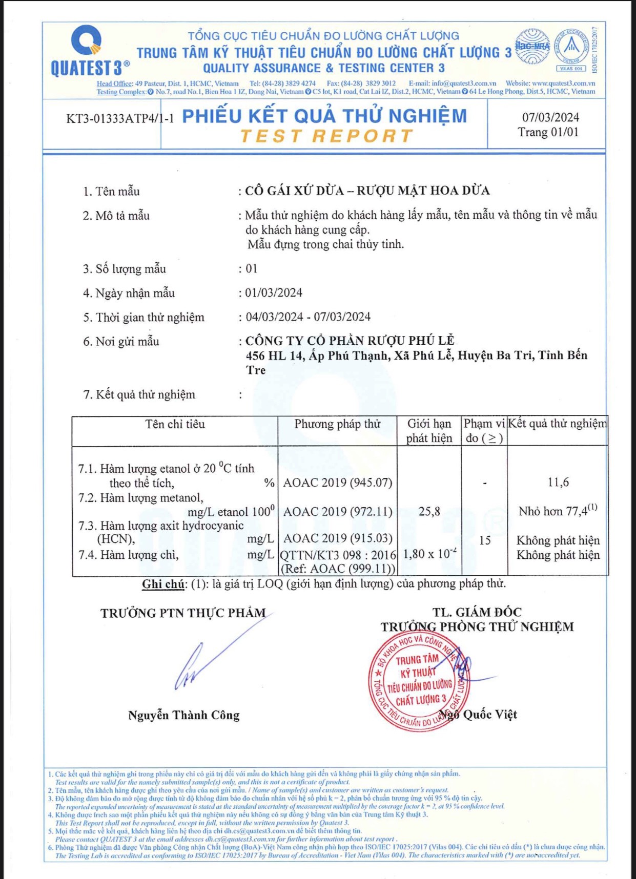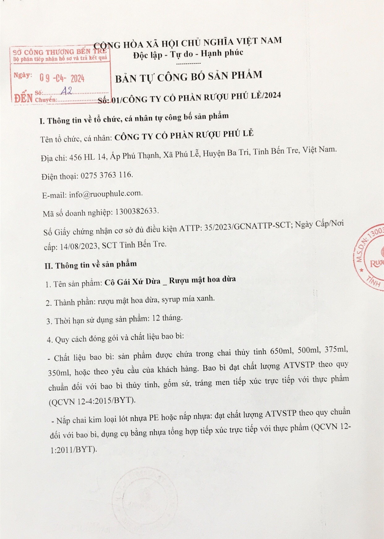 Cô Gái Xứ Dừa với thành phần từ mật hoa dừa lên men, mang đến cảm giác chua thanh, dịu ngọt. Sản phẩm phù hợp để uống khai vị và nhâm nhi trong lúc chuyện
