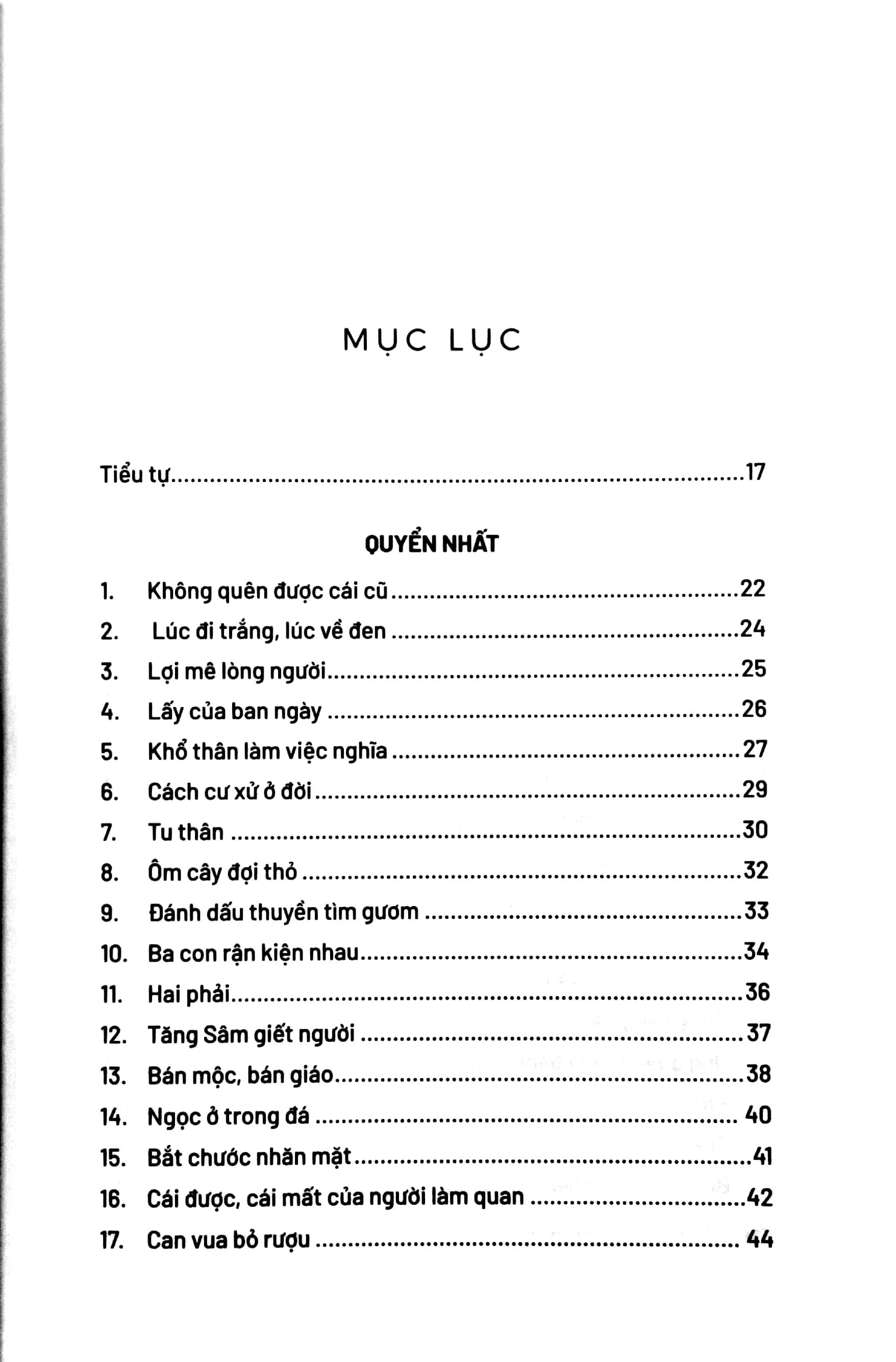 Mỗi mẩu chuyện nhỏ trong sách đều chứa những triết lý sống rất đơn giản, mang nghĩa lý hàm súc, dồi dào; nói ra hẳn ai cũng biết nhưng đôi khi lại bỏ quên. Kèm theo mỗi mẩu chuyện lại có thêm phần giải nghĩa và lời bàn của nhà soạn giả để lý giải ngắn gọn, rõ ràng hơn về từ ngữ sử dụng trong sách, góp phần dễ đọc, dễ hiểu.