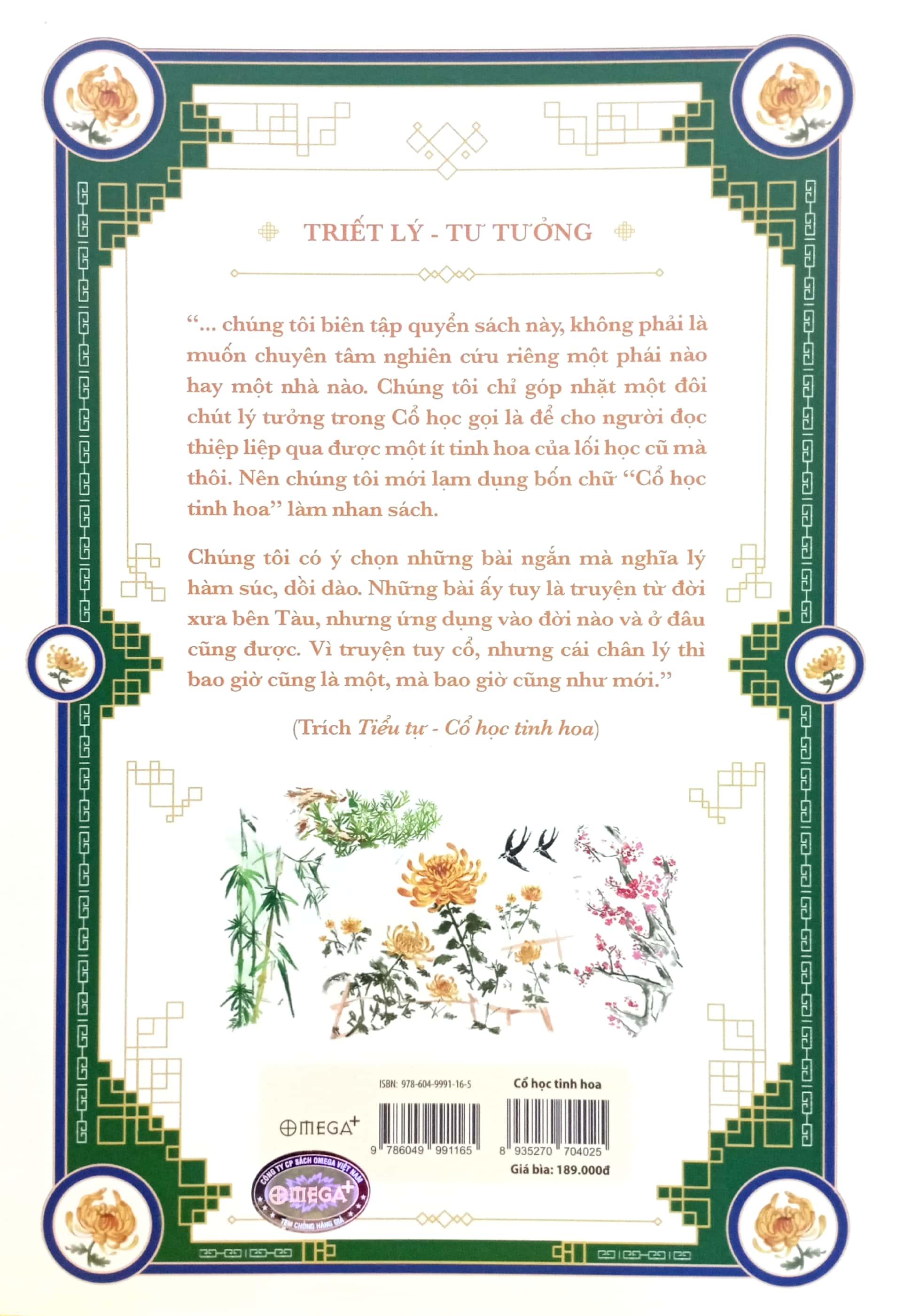 Cuốn sách “Cổ học tinh hoa” do Omega+ xuất bản được in theo bản in đầu tiên, do Vĩnh Long Thư Quán xuất bản năm 1926-1929, có bổ sung hệ thống chú thích. Tác phẩm nằm trong mảng Triết lý Tư tưởng thuộc Tủ sách Đời Người – Tinh tuyển cho người Việt. Là tủ sách cơ bản trong mọi gia đình Việt dành cho mọi thế hệ độc giả.