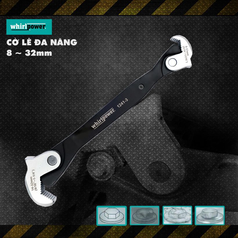 - Cờ lê đa năng 8 - 32mm Whirlpower 1241-3-0832 giúp cho các bạn vặn được những bulong có kích thước hệ Met từ 8 đến 32mm và cả những bulong hệ Inch từ 5/16” đến 1 1/4” .