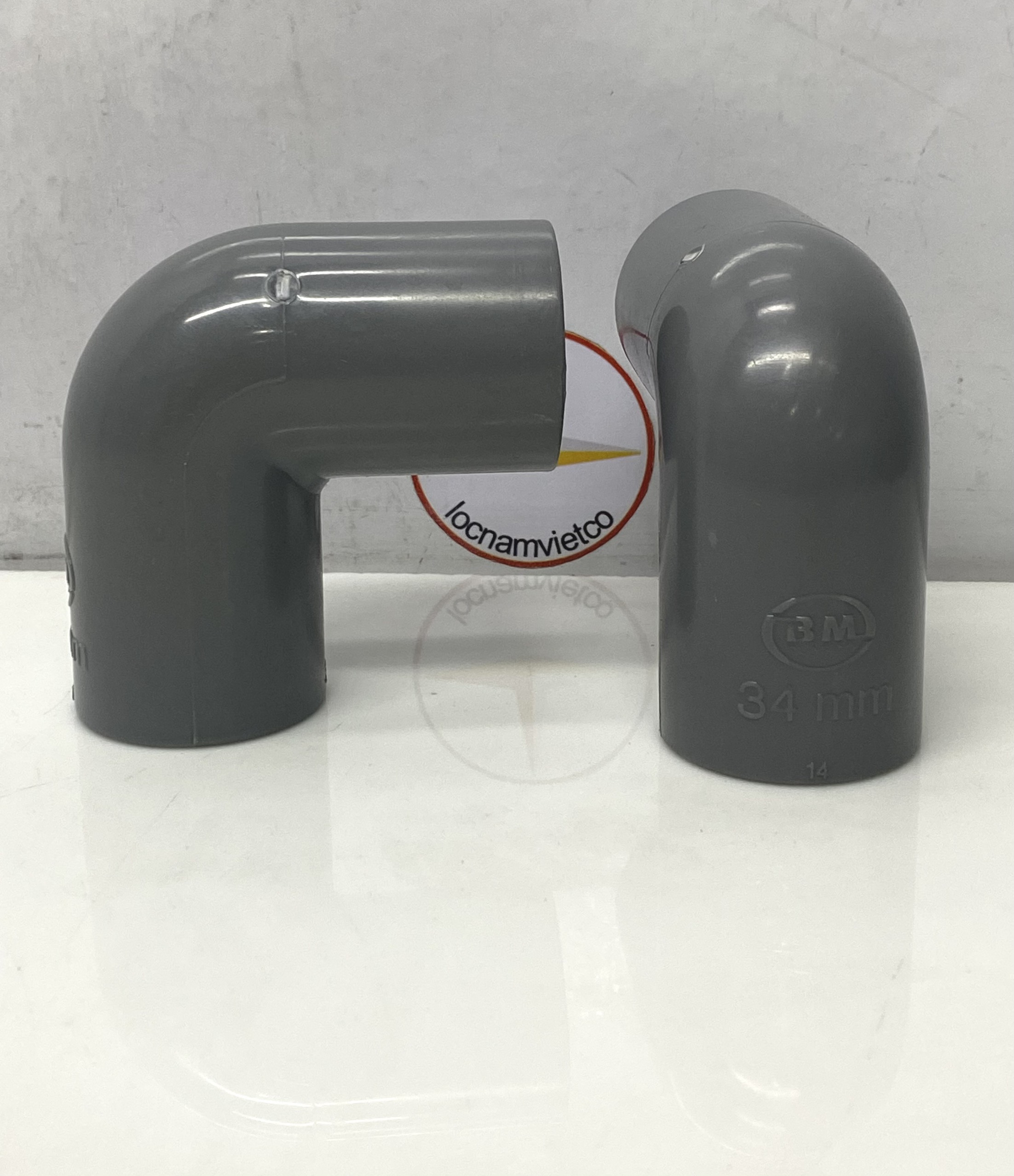 Co 34 nhựa PVC Bình Minh(ElBow)_C34 Co có nhiều nơi còn gọi là co vuông, co 90 độ, cút (tiếng anh ElBow) dùng chuyển hướng ống theo góc vuông 90 độ. Đặc Điểm: