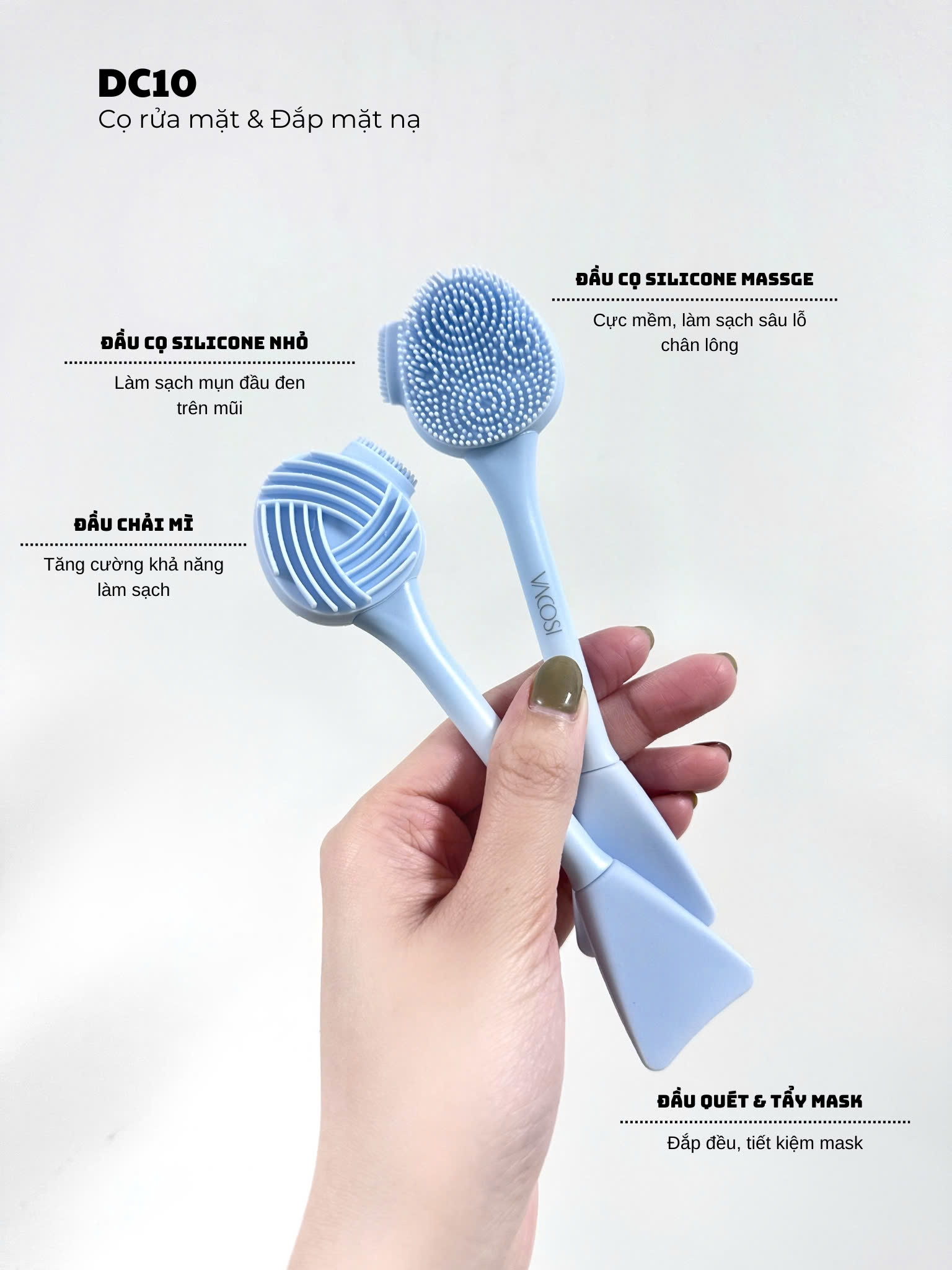 VACOSI FACIAL CLEANSING BRUSH CỌ RỬA MẶT & ĐẮP MẶT NẠ VACOSI Cọ rửa mặt và mặt nạ chuyên dụng với nhiều loại đầu chổi từ silicone cao cấp an toàn cho da, đa dụng