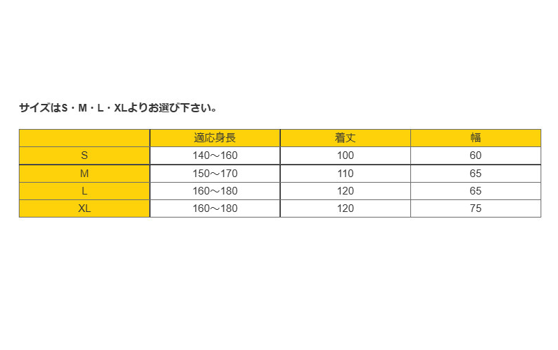 - Size XL: 75 x 120Hcm (~160 - 180cm)