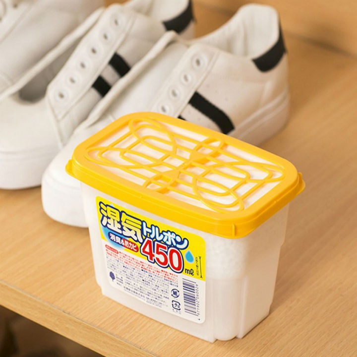 Hộp hút ẩm, khử mùi Nhật Bản 450ml Thành phần: Calcium chloride, chất khử mùi, chất chống mốc... vv Màu sắc: Màu vàng Kích thước: 9.5x3.3x5.6Hcm Dung tích: 450ml Công dụng: * Dùng để hút