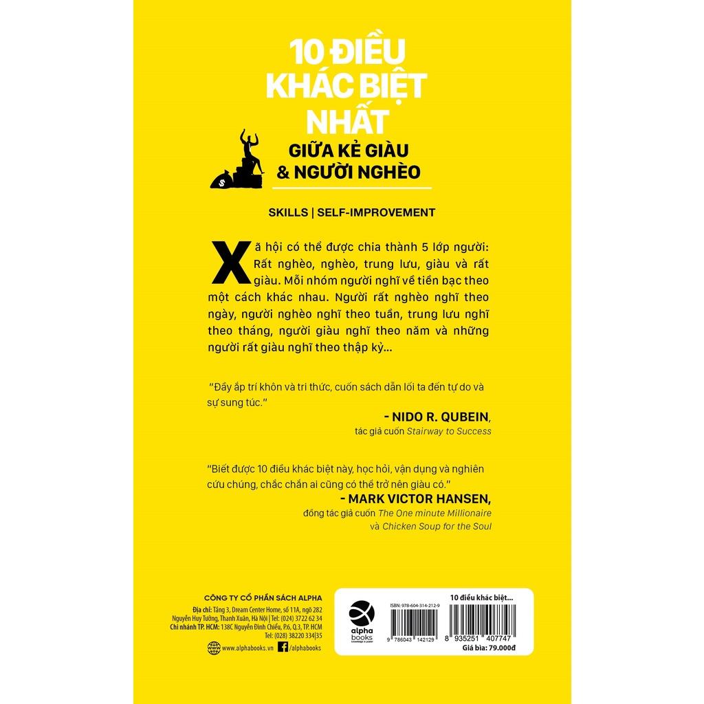 Cuốn sách 10 điều khác biệt nhất giữa kẻ giàu và người nghèo có thể giúp bạn rời xa thế giới nghèo khó, để bước lên nấc thang cao hơn nhờ 10 nguyên tắc vàng bao gồm: