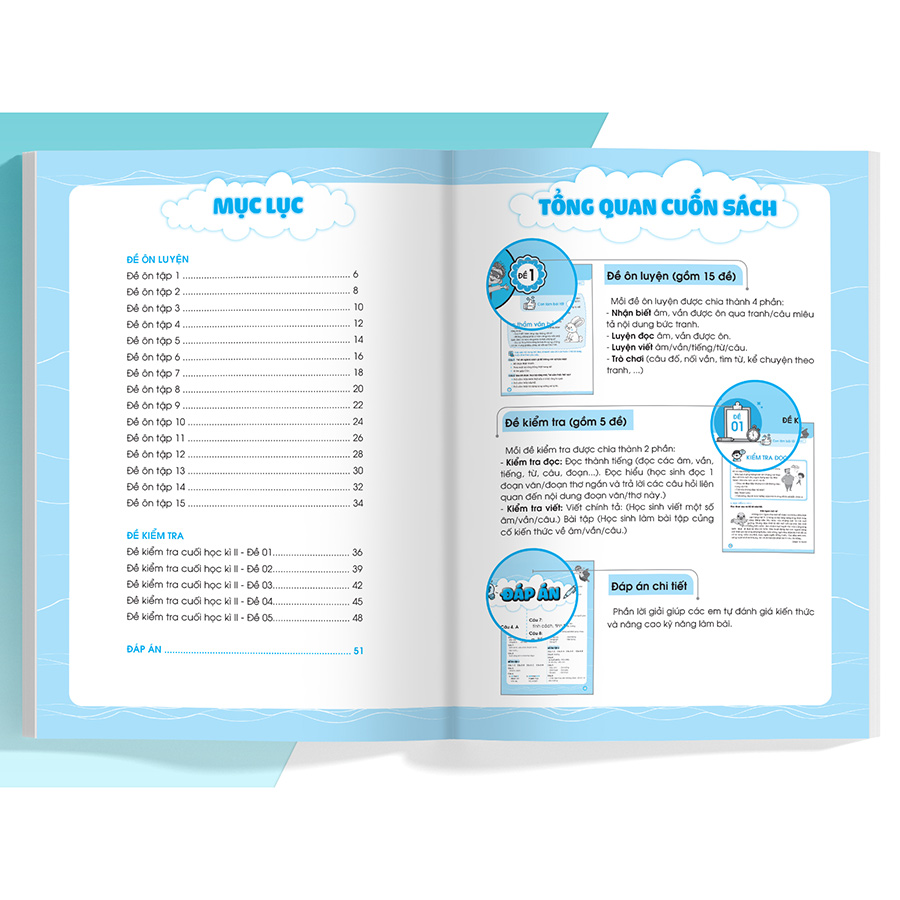 Sách được chia thành 2 phần rất dễ hiểu cho các bé: Phần đề ôn tập và Phần đề kiểm tra.
