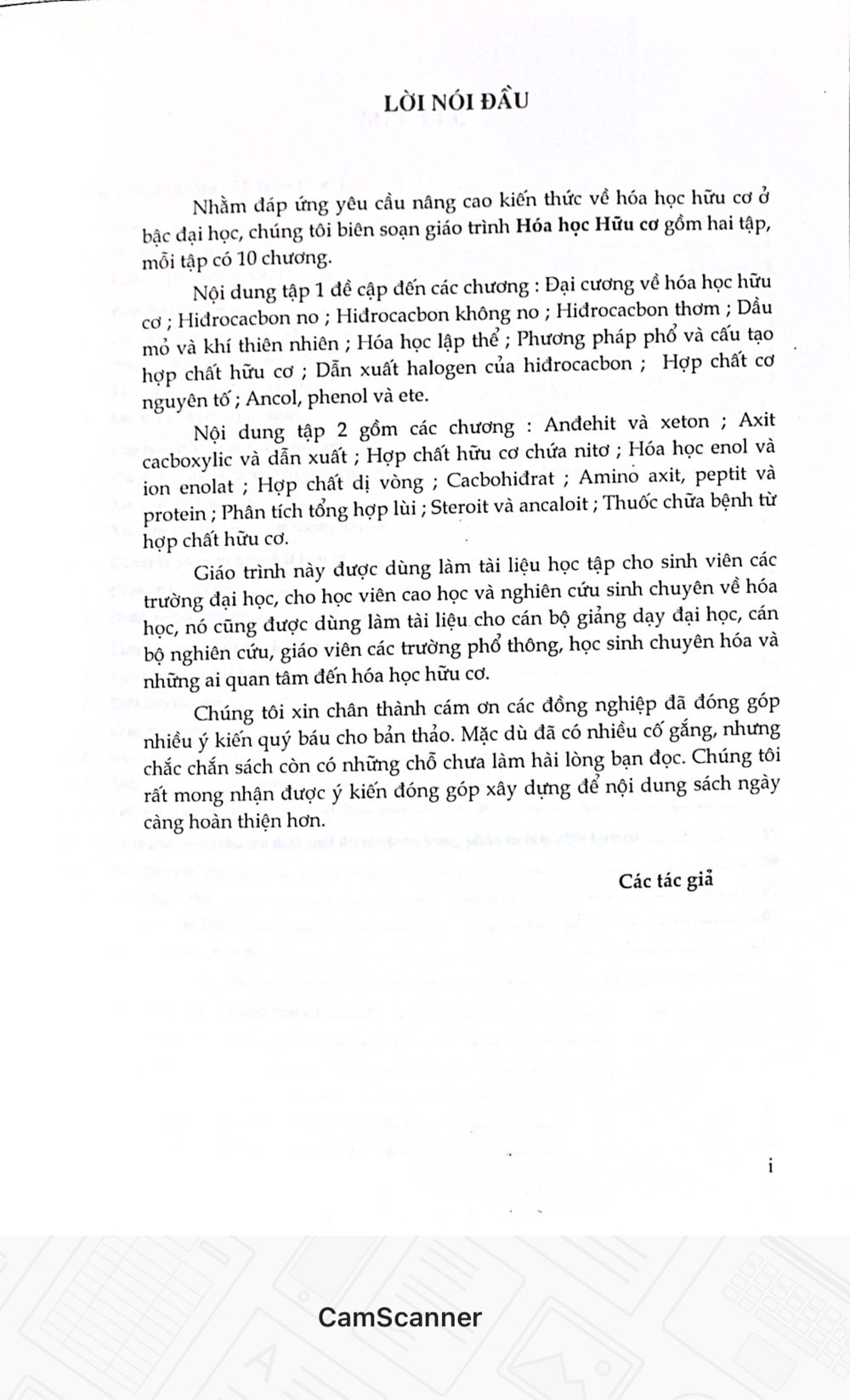 Giáo trình này được dùng làm tài liệu học tập cho sinh viên các trường đại học, cho học viên cao học và nghiên cứu sinh chuyên về hóa học, nó cũng được dùng làm tài liệu cho cán bộ giảng dạy đại học, cán bộ nghiên cứu, giáo viên các trường phổ thông, học sinh chuyên hóa và những ai quan tâm đến hóa học hữu cơ.