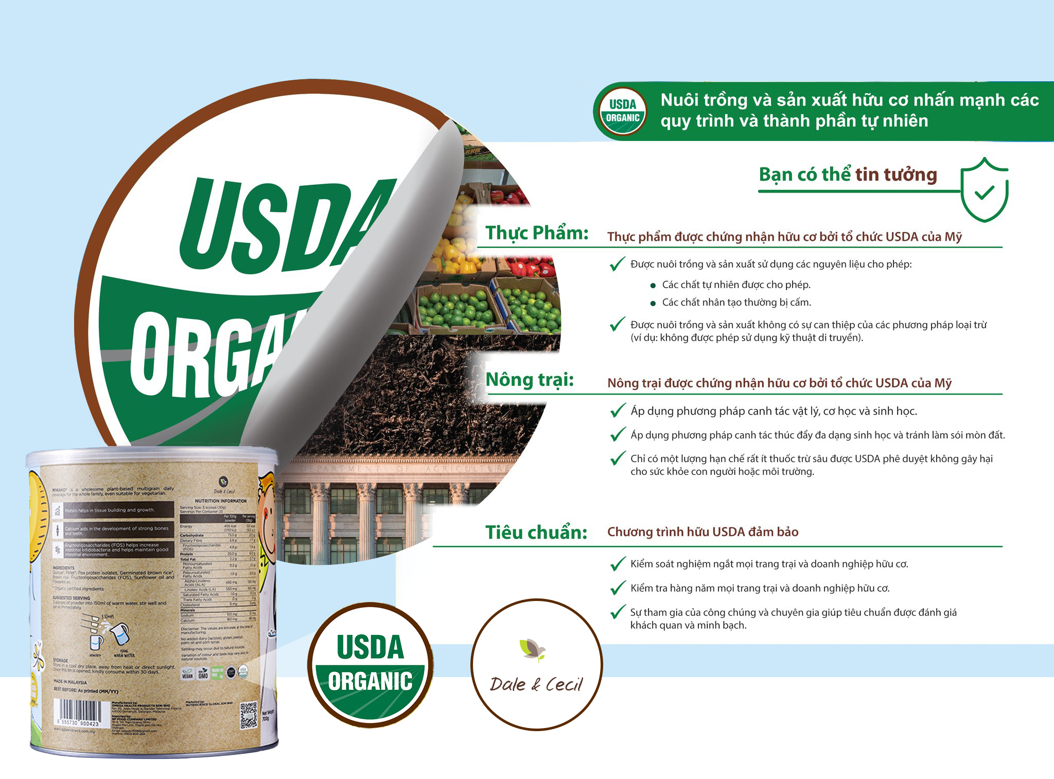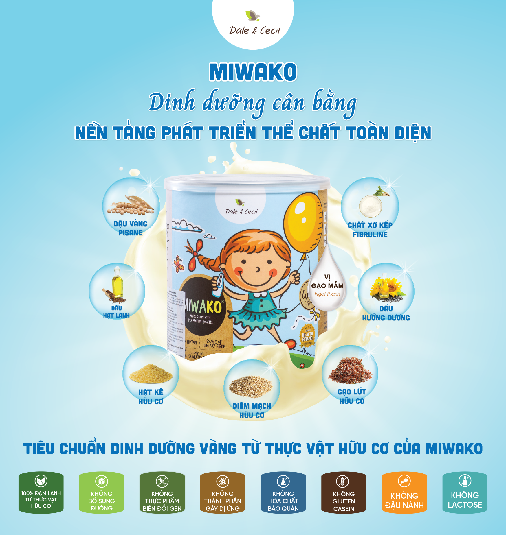- Thành phần được chứng nhận hữu cơ: Không thêm gluten, lúa mì, sữa, các loại hạt, đậu nành, chất bảo quản, phẩm màu nhân tạo và hương liệu nhân tạo. TẠI SAO NÊN SỬ DỤNG SỮA MIWAKO CHO BÉ