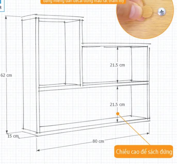Hướng dẫn lắp ráp kệ sách gỗ chữ L treo tường decor