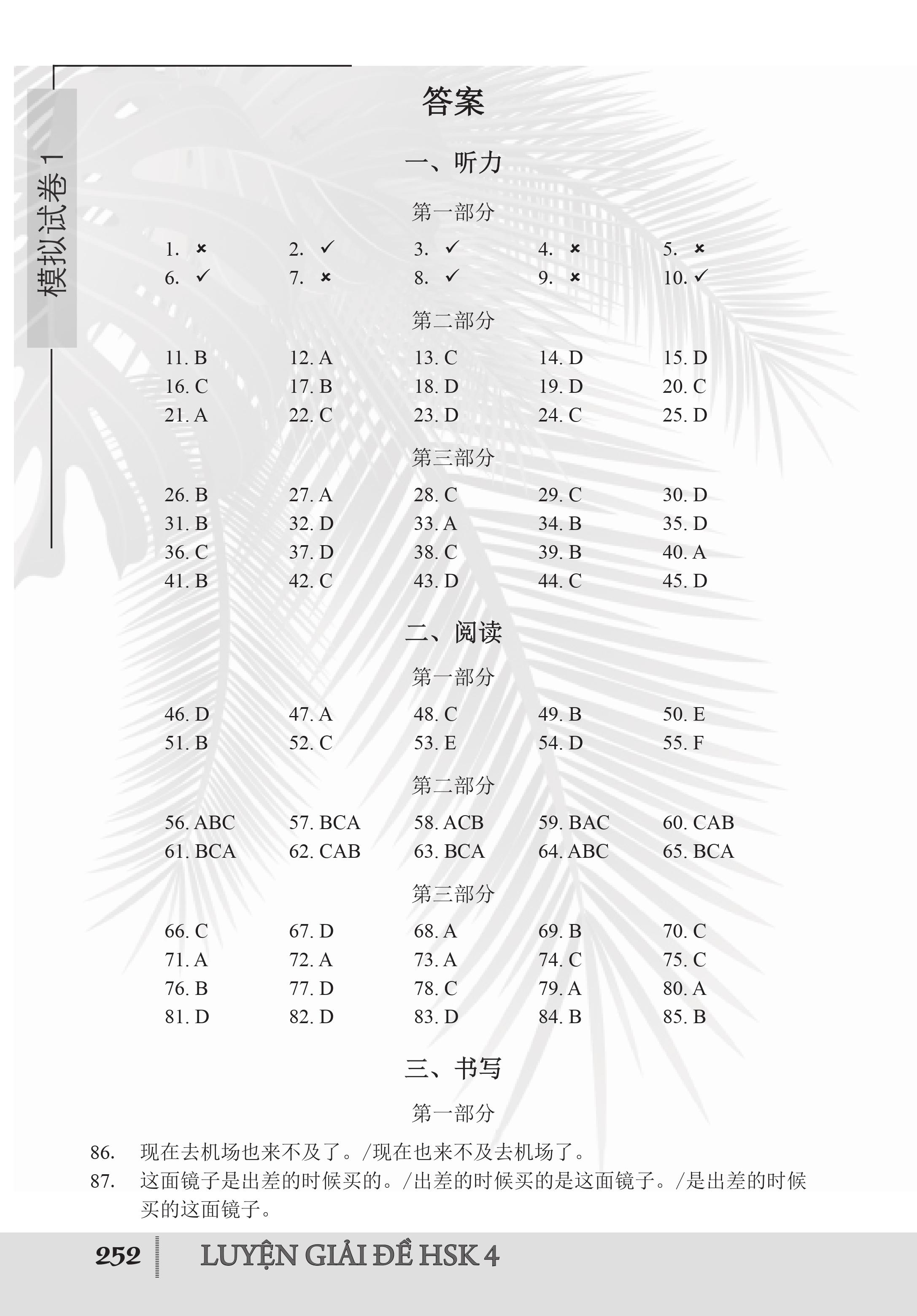 - Phần 2: Đề thi mô phỏng - cung cấp 12 bộ đề thi mô phỏng được biên soạn sát với đề thi thực của kỳ thi HSK cấp 4.