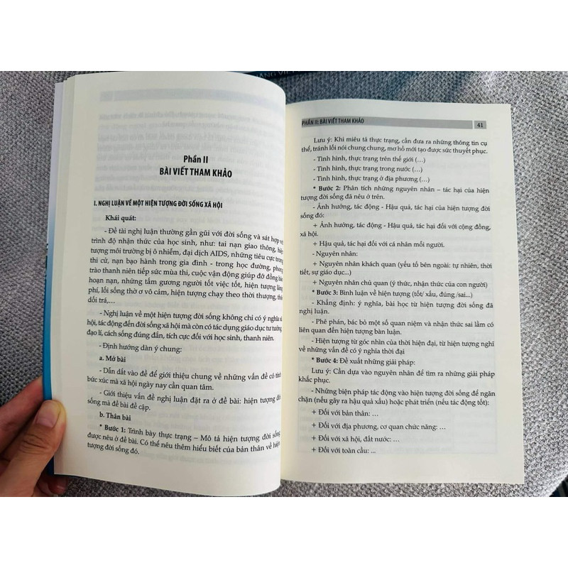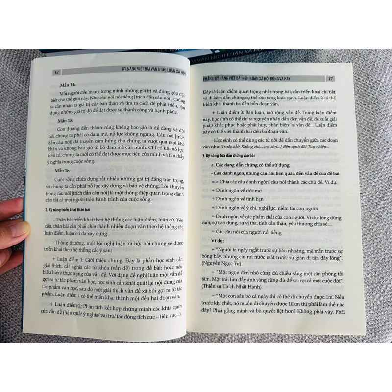 Kỹ năng viết bài văn nghị luận xã hội Kể từ năm 20222-2023, chúng ta đã chính thức áp dụng bộ sách giáo khoa mới vào chương trình dạy học các cấp. Việc tiếp cận với điều mới chưa bao giờ dễ dàng, đặc biệt cùng một lúc có 3 bộ sách: Kết nối tri thức với cuộc sống, Cánh Diều và Chân trời sáng tạo. Cuốn sách KỸ NĂNG VIẾT BÀI VĂN NGHỊ LUẬN XÃ HỘI sẽ định hướng cho thầy cô và các em kỹ năng triển khai bài văn nghị luận xã hội đúng và hay, đồng thời cung cấp các bài viết tham khảo, hệ thống các dẫn chứng vận dụng trong bài nghị luận xã hội. Cuốn sách bám sát đề minh họa môn Ngữ Văn của Bộ Giáo dục và Đào tạo công bố vào tháng 12 năm 2023, đáp ứng tiêu chí: cập nhật, chi tiết và sáng tạo. —————————- Cuốn sác bao gồm ba phần: