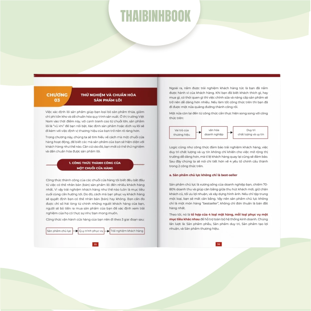 - Nội dung chính: Cuốn sách này là cẩm nang thực chiến, cung cấp các nguyên tắc và công thức cốt lõi để xây dựng, quản lý và nhân rộng hệ thống chuỗi cửa hàng một cách nhanh chóng, đồng bộ và dễ dàng kiểm soát. Nội dung tập trung vào: Xác định mô hình sinh lời bền vững và tránh rủi ro khi mở rộng. Xây dựng hệ thống chuẩn hóa (quy trình, chất lượng) giữa các chi nhánh. Kiểm tra và đánh giá hiệu quả vận hành từng chi nhánh để điều chỉnh kịp thời. Đào tạo nhân sự để duy trì chất lượng dịch vụ đồng đều. Hướng dẫn cách nhân bản mô hình lợi nhuận, không chỉ là sao chép cửa hàng.