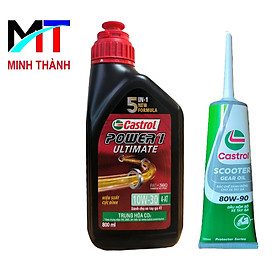 ✨Combo 2 sản phẩm dầu nhớt động cơ cao cấp và dầu hộp số (dầu Lap) cho xe ga (Castrol Power1 Ultimate scooter 0,8L và Castrol scooter gear oil)