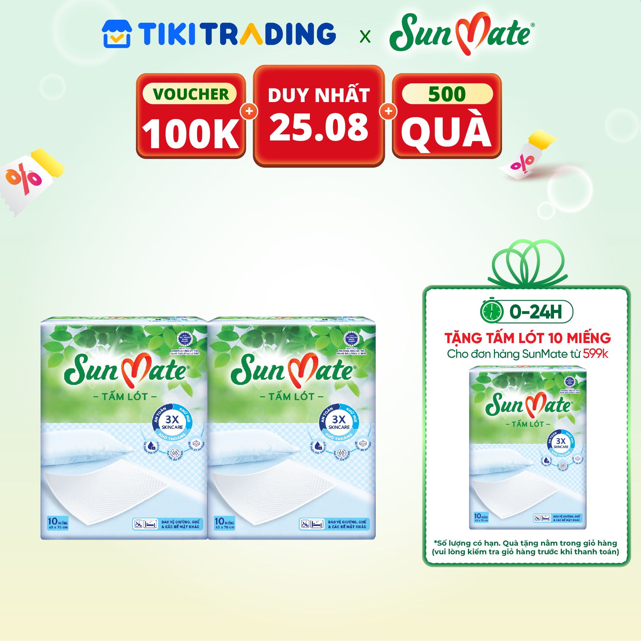 Combo 2 Tấm lót SunMate cải tiến mới (45 x 70cm)Giới thiệuSản phẩm tấm lót SunMate dành cho cả nam và nữ, phù hợp với người hạn chế khả năng đi lại. Hạt gel tác động kép siêu thấm hút và kháng khuẩ...