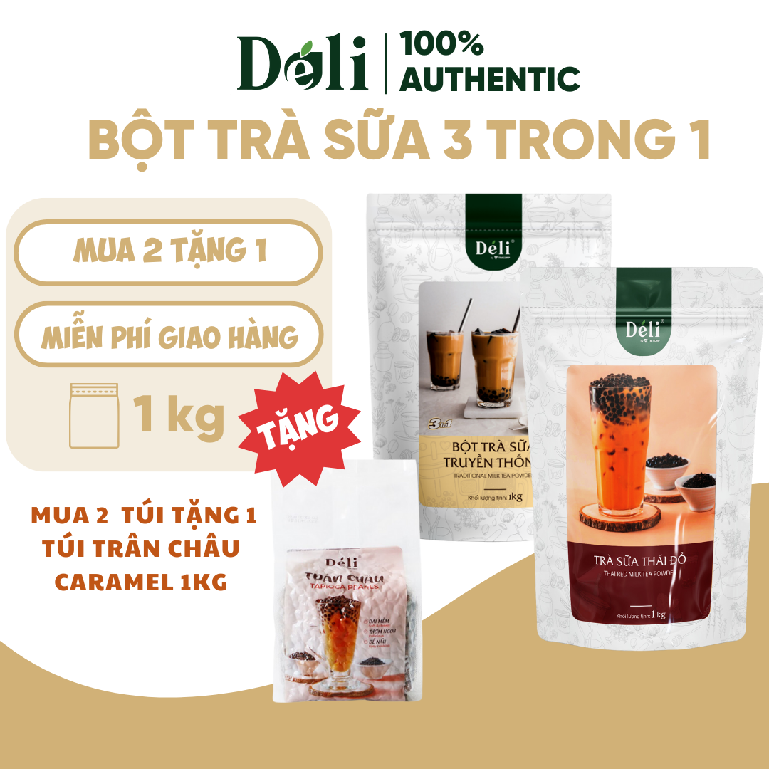 Combo 2 Túi Bột trà sữa thái đỏ + truyền thống 3in1 Déli - 1kg pha chế trà sữa tiện lợi, nhanh chóng