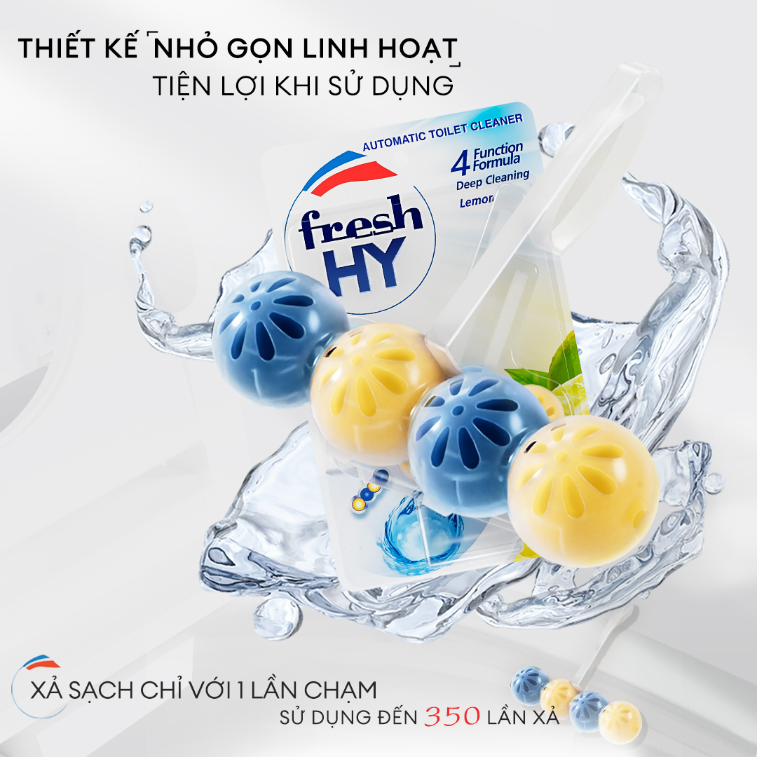 Viên Tẩy Bồn Cầu Fresh HY 350 Lần Xả, Làm Sạch Khuẩn & Ngăn Ngừa Mảng Bám, Khử Mùi Và Lưu Hương Thơm Mát (2 Vỉ Treo) Công thức 4 chức năng 1. Làm sạch toilet mỗi lần xả nước. 2. Công thức giúp ngăn ngừa sự hình thành cặn vôi. 3. Giúp ngăn ngừa bụi bẩn mới bám vào bề mặt. 4. Lưu hương thơm tươi mát lâu dài trong phòng tắm.