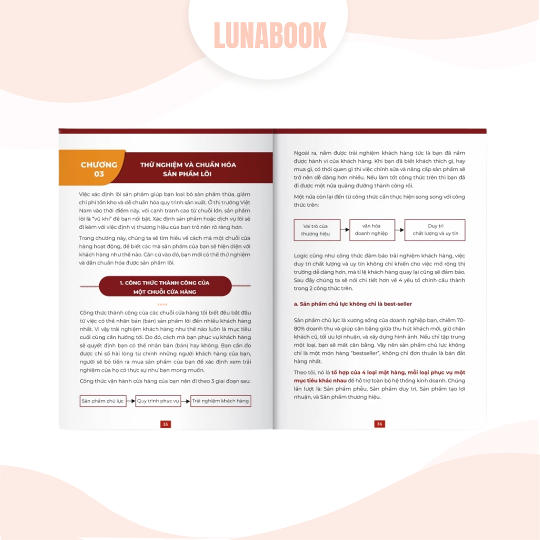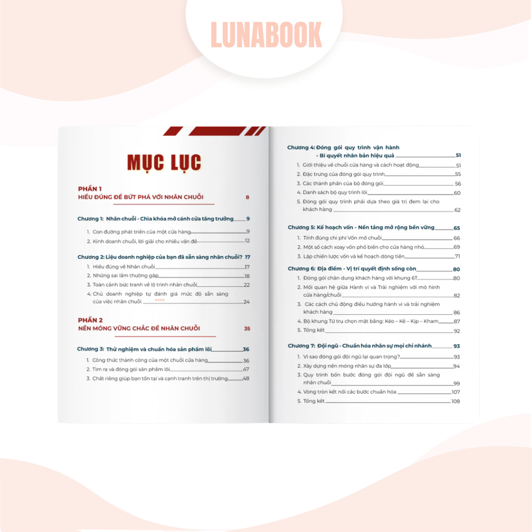 - Nhân Chuỗi & Quản Lý Hệ Thống Chuỗi Cuốn sách này là giải pháp cho các doanh nghiệp muốn mở rộng chuỗi cửa hàng nhưng lo ngại về rủi ro quản lý, thất thoát, và thiếu đồng bộ. Trọng tâm: Hướng dẫn toàn diện từ chuẩn bị nhân chuỗi, chuẩn hoá sản phẩm lõi, đến vận hành đồng bộ và phát triển bền vững. Giá trị nổi bật: Cung cấp checklist chi tiết, case study thực tế, quy trình phục vụ chuẩn mực và chia sẻ kinh nghiệm quản trị tài chính – vận hành – nhân sự để xây dựng chuỗi hiệu quả, giảm thiểu sai lầm thường gặp.