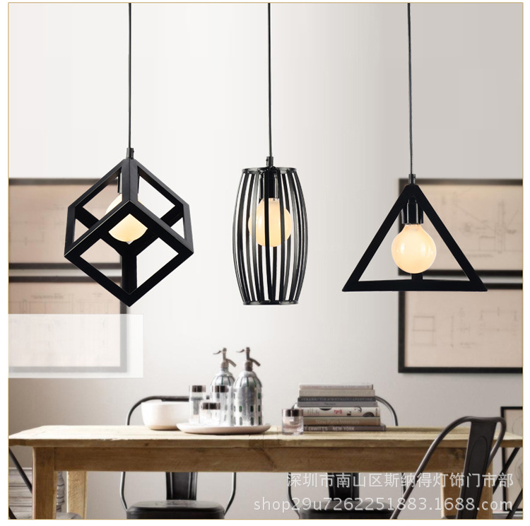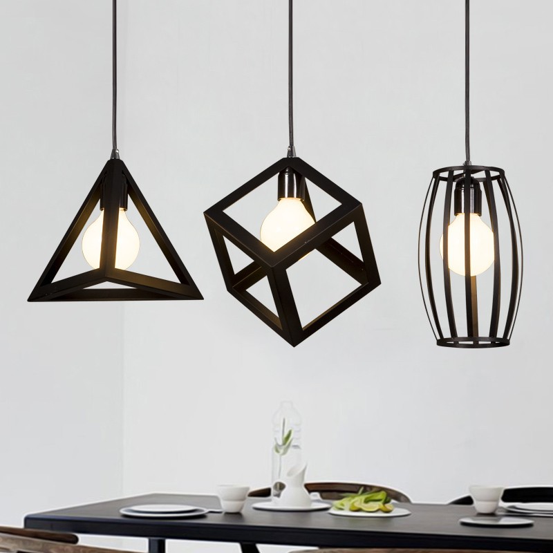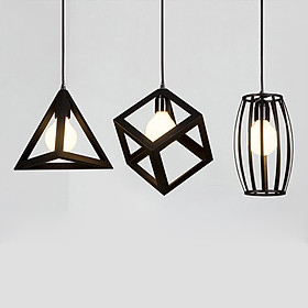 Bộ 3 đèn thả trang trí khối vuông, ttam giác, trụ lồng trang trí cao cấp KÈM BÓNG LED Đường kính đèn 25cm. Làm bằng khung sắt sơn tĩnh điện. Phù hợp cho trang trí quán cafe, cửa hàng thời trang. Đèn đã bao gồm bóng LED, bộ dây đui và bộ vít trần