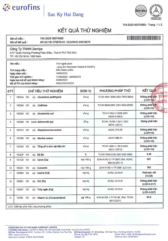 - Giấy kiểm nghiệm số AR-23-VD-079579-01 được cấp bởi Eurofins II. ĐẶC ĐIỂM NỔI BẬT