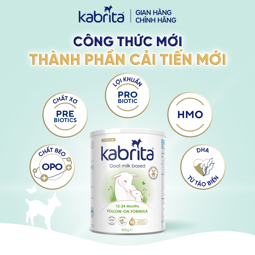 Không chỉ vậy, công thức cải tiến của Kabrita còn bổ sung chất béo tự nhiên từ sữa dê cùng chất béo bổ sung OPO, tăng cường khả năng tiêu hóa và giúp bé hấp thu tối đa dưỡng chất. Sản phẩm cũng chứa đầy đủ vitamin và khoáng chất thiết yếu, hỗ trợ toàn diện sự phát triển trí não, thị giác, hệ miễn dịch và sức khỏe đường ruột của bé.
