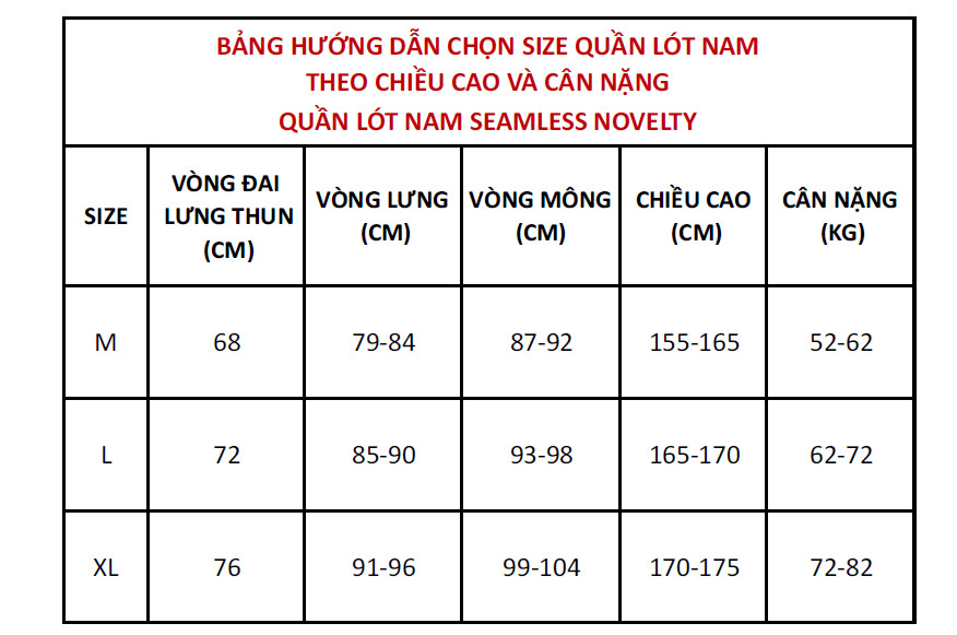 +XL(50-60kg), + XXL(60-70kg), + XXXL (70-80kg) __________________________ CAM KẾT - Về chất lượng sản phẩm: cam kết cả về chất liệu cũng như hình dáng (Đạt như mô tả, hình ảnh sản phẩm chân thực,