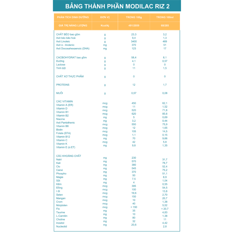 • Modilac Expert Riz hoàn toàn không chứa lactose phù hợp với trẻ bất dung nạp lactose. Là sản phẩm thuộc tập đoàn Savencia (Pháp) với nguồn đạm gạo thủy phân, bổ sung canxi cao (theo khuyến nghị chuyên khoa) và công thức nghiên cứu đặc biệt phù hợp cho trẻ dị ứng đạm bò, bất dung nạp lactose, Modilac Expert Riz là sản phẩm được các ba mẹ tại nhiều nước trên thế giới tin chọn.