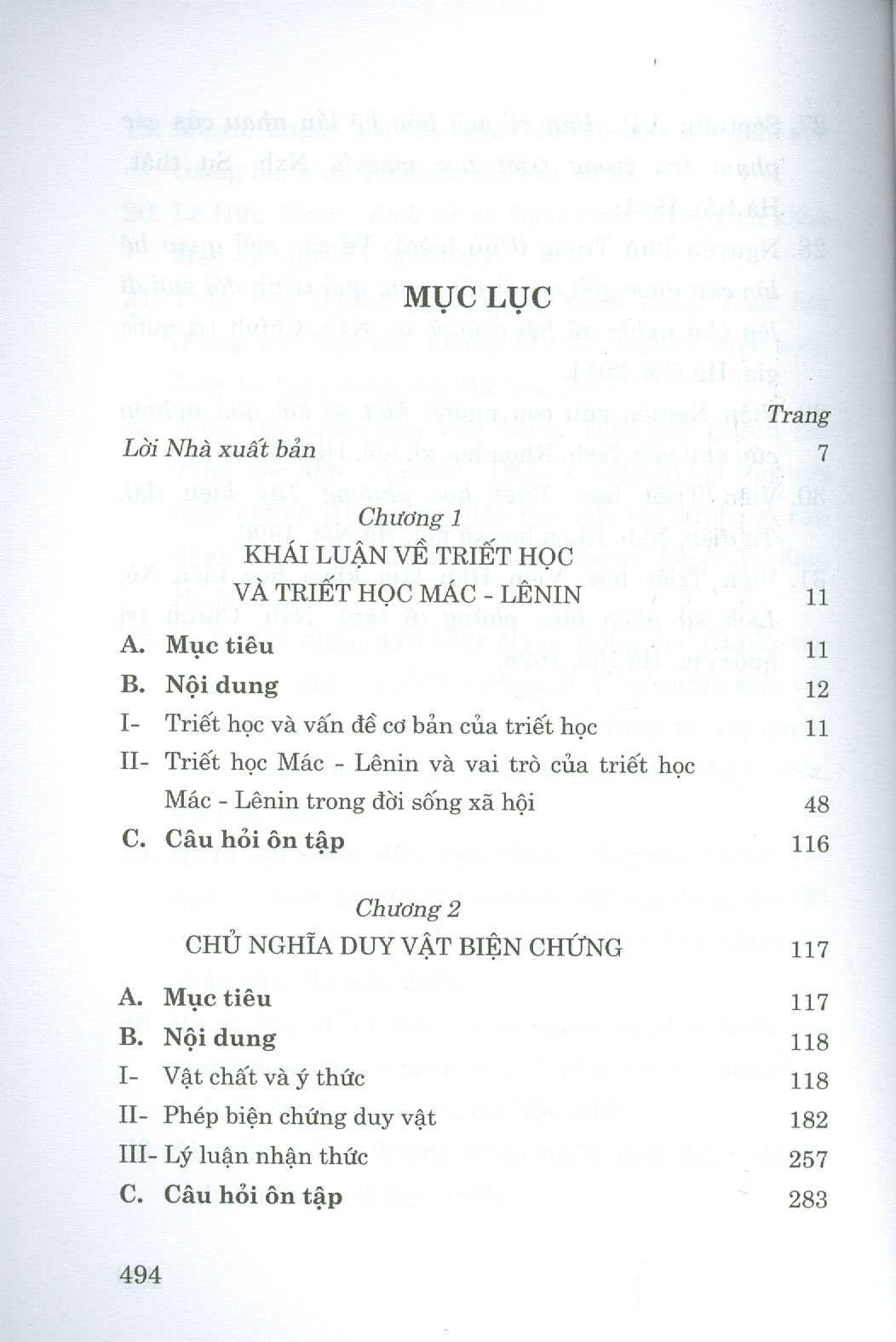 Bộ giáo trình lý luận chính trị gồm 5 cuốn dành cho bậc đại học hệ không chuyên lý luận chính trị. Bộ sách là tài liệu giảng dạy, học tập cho giảng viên, sinh viên các trường đại học theo chương trình mới do Bộ Giáo dục và Đào tạo và Nhà xuất bản Chính trị Quốc gia xuất bản. Bộ giáo trình được biên soạn theo tinh thần đổi mới cả về nội dung và phương pháp giảng dạy, tiếp cận với những phương pháp giáo dục mới, cập nhật những nghiên cứu, kiến thức lý luận chính trị mới, chú trọng liên hệ với thực tiễn công cuộc đổi mới, phát triển đất nước. Bộ giáo trình dành cho bậc đại học hệ không chuyên lý luận chính trị, cung cấp các vấn đề cơ bản nhất về chủ nghĩa Mác - Lênin, trọng tâm là về chủ nghĩa duy vật biện chứng, chủ nghĩa duy vật lịch sử, gắn với tư tưởng Hồ Chí Minh và đường lối, chủ trương của Đảng. Sách có nguồn gốc xuất xứ, rõ ràng, hợp pháp về bản quyền, có mã QRcode (mã định danh từng cuốn sách) và tem chống giả, là bản gốc, mới 100% chưa qua sử dụng của Nhà xuất bản Chính trị Quốc gia và Bộ GD&ĐT theo đúng quy định của pháp luật hiện hành. Giáo Trình Triết Học Mác – Lênin (Dành Cho Bậc Đại Học Hệ Không Chuyên Lý Luận Chính Trị) Giáo trình do Ban biên soạn gồm các tác giả là nhà nghiên cứu, nhà giáo dục thuộc Viện Triết học - Học viện Chính trị quốc gia Hồ Chí Minh, các học viện, trường đại học, Viện Triết học - Viện Hàn lâm Khoa học xã hội Việt Nam, tổ chức biên soạn trên cơ sở kế thừa những kết quả nghiên cứu trước đây, đồng thời bổ sung nhiều nội dung, kiến thức, kết quả nghiên cứu mới, gắn với công cuộc đổi mới ở Việt Nam, nhất là những thành tựu trong 35 năm đổi mới đất nước. Giáo trình gồm 03 chương: Chương 1 trình bày những nét khái quát nhất về triết học, triết học Mác - Lênin và vai trò của triết học Mác - Lênin trong đời sống xã hội. Chương 2 trình bày những nội dung cơ bản của chủ nghĩa duy vật biện chứng, gồm: vấn đề vật chất và ý thức; phép biện chứng duy vật; lý luận nhận thức của chủ nghĩa duy vật biện chứng. Chương 3 trình bày những nội dung cơ bản của chủ nghĩa duy vật lịch sử, gồm: vấn đề hình thái kinh tế - xã hội; giai cấp và dân tộc; nhà nước và cách mạng xã hội; ý thức xã hội; triết học về con người. Giáo trình được biên soạn theo yêu cầu đổi mới căn bản, toàn diện giáo dục và đào tạo, phù hợp với đối tượng người học, nhằm cung cấp những tri thức hiểu biết có tính nền tảng và hệ thống về triết học Mác - Lênin; xây dựng thế giới quan duy vật và phương pháp luận biện chứng duy vật làm nền tảng lý luận cho việc nhận thức các vấn đề, nội dung của các môn học khác; nhận thức được thực chất giá trị, bản chất khoa học, cách mạng của triết học Mác - Lênin. Đồng thời, giúp cho sinh viên vận dụng tri thức triết học Mác - Lênin, thế giới quan duy vật và phương pháp luận biện chứng duy vật để rèn luyện tư duy, giúp ích trong học tập và cuộc sống. Giáo Trình Kinh Tế Chính Trị Mác – Lênin (Dành Cho Bậc Đại Học Hệ Không Chuyên Lý Luận Chính Trị) Giáo trình do PGS.TS. Ngô Tuấn Nghĩa chủ biên, cùng tập thể tác giả là những nhà nghiên cứu, nhà giáo dục có nhiều kinh nghiệm tổ chức biên soạn. Giáo trình gồm 6 chương: Chương 1 cung cấp những tri thức cơ bản về sự ra đời và phát triển của môn học kinh tế chính trị Mác - Lênin; đối tượng nghiên cứu, phương pháp nghiên cứu và chức năng của khoa học kinh tế chính trị Mác - Lênin trong nhận thức cũng như trong thực tiễn. Chương 2 cung cấp một cách có hệ thống về lý luận giá trị lao động của C. Mác thông qua các phạm trù cơ bản về hàng hóa, tiền tệ, giá cả, quy luật giá trị, tính hai mặt của lao động sản xuất hàng hóa, năng suất lao độ Chương 3 trình bày ba nội dung: 1) Lý luận của C. Mác về giá trị thặng dư, đây cũng chính là nội dung cốt lõi học thuyết giá trị thặng dư của C. Mác, hòn đá tảng trong lý luận kinh tế chính trị của C. Mác; 2) Tích lũy tư bản (cách thức sử dụng giá trị thặng dư); 3) Phân phối giá trị thặng dư trong nền kinh tế thị trường tự do cạnh tranh tư bản chủ nghĩa. Chương 4 cung cấp hệ thống tri thức lý luận của V.I. Lênin về độc quyền và độc quyền nhà nước trong nền kinh tế thị trường tư bản chủ nghĩa. Chương 5 cung cấp tri thức lý luận cơ bản về nền kinh tế thị trường mang đặc thù phát triển của Việt Nam, vấn đề quan hệ lợi ích và bảo đảm hài hòa các quan hệ lợi ích trong phát triển ở Việt Nam. Chương 6 cung cấp hệ thống tri thức về công nghiệp hóa, hiện đại hóa ở Việt Nam trong bối cảnh thích ứng với cuộc Cách mạng công nghiệp lần thứ tư; trong đó đề cập những nội dung cơ bản như: khái quát lịch sử các cuộc cách mạng công nghiệp; khái quát về công nghiệp hóa và các mô hình côn
