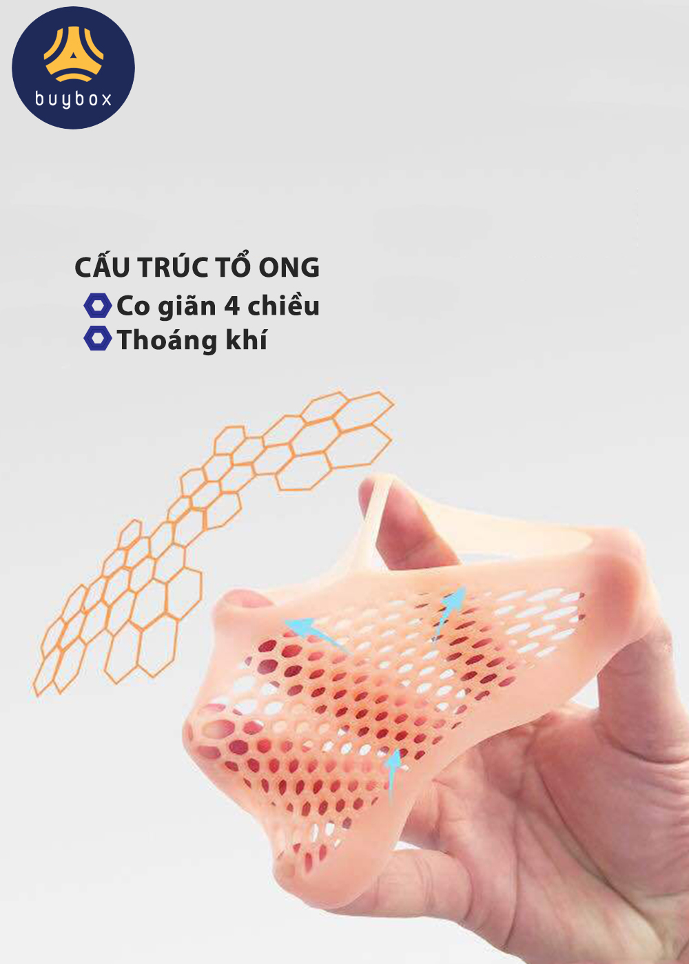 - Vớ silicone tổ ong của buybox mang trực tiếp vào bàn chân nên thoải mái vận động và di chuyển.
