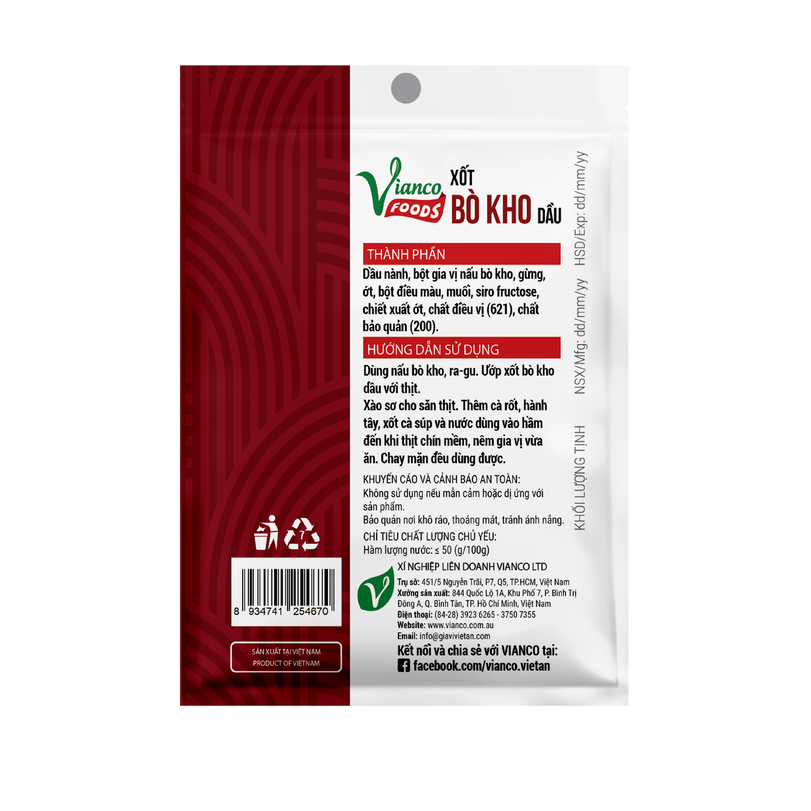 - Bảo quản: nơi khô ráo, thoáng mát, tránh ánh nắng trực tiếp chiếu vào sản phẩm. Sau khi sử dụng sản phẩm còn dư nên trữ trong hủ kín có nắp đậy. Nên sử dụng gia vị trước hạn hết date. Không nên sử dụng nếu túi đã bị mở hay bị rách. >>>Mua ngay sản phẩm chính hãng tại gian hàng Vianco – Gia vị Việt Ấn trên Tiki<<< VIANCO - GIA VỊ VIỆT ẤN 63 NĂM CHUẨN VỊ NGON BAO THẾ HỆ Địa chỉ công ty: 451/5 Nguyễn Trãi, Phường 7, Quận 5, Thành phố Hồ Chí Minh Vianco Gia vị Việt Ấn trứ danh với nhiều sản phẩm gia vị đa dạng: Cà ry Việt Ấn hiệu Đầu bếp Ấn Độ, Ngũ vị hương Việt Ấn hiệu Con Nai, Gia vị tiện lợi ViancoFoods, và nhiều gia vị đơn chất cùng hàng nông sản thuần tự nhiê tốt cho sức khỏe và vẹn tròn bữa ăn ngon cho gia đình bạn.